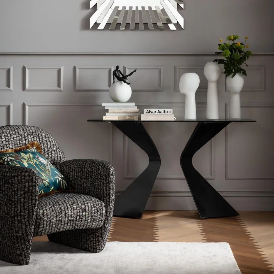 - Das schwungvolle Gestell verleiht dieser modernen Konsole ein skulpturales Design