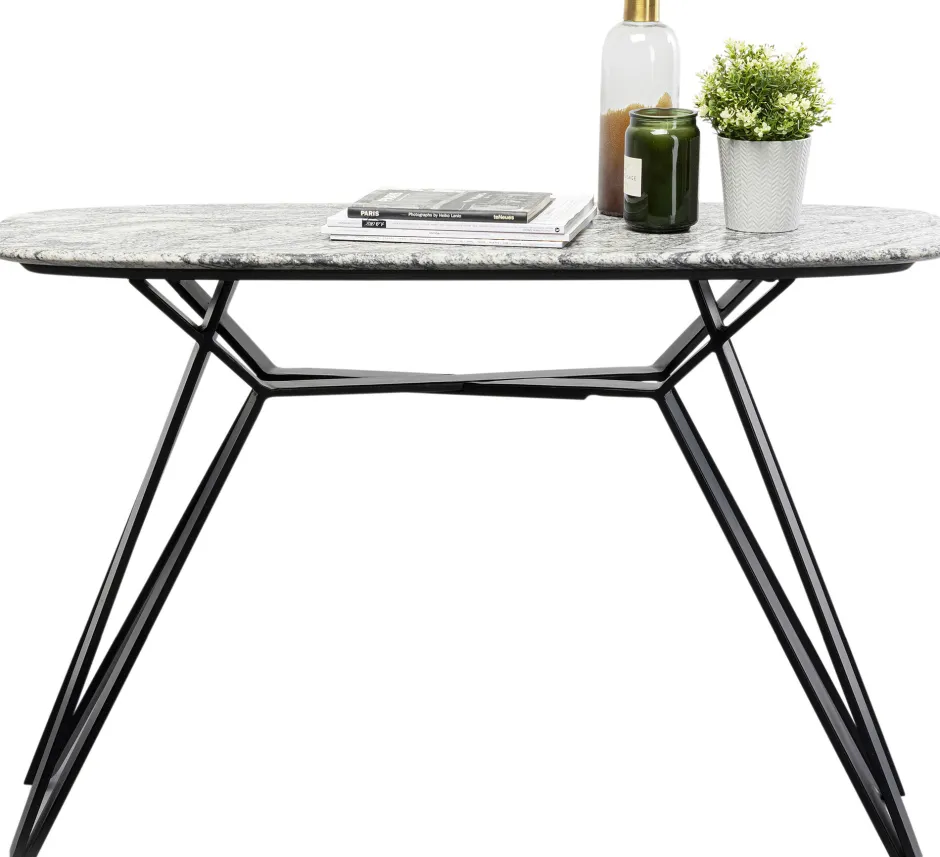 - Schwarze Konsole mit marmorierter Platte in Grau, 80 x 120 x 40 Zentimeter (H/B/T)