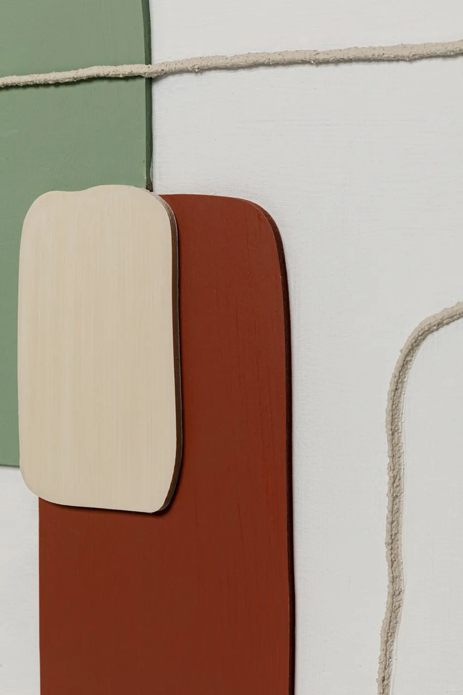 - Das Wandbild begeistert mit abstrakten Motiven und Formen in gedeckten, hellen Farben