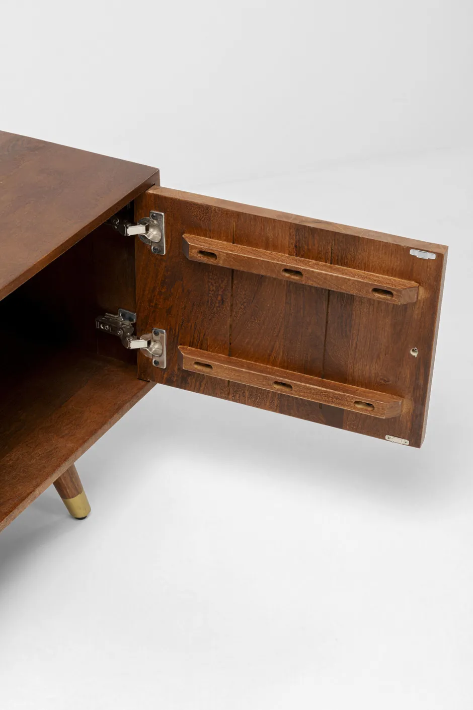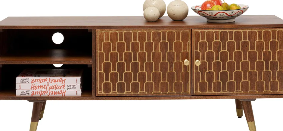 - Erinnert an die ersten TV Möbel der Sixties und setzt den Fernseher samt Bücker und Deko-Artikel stilvoll in Szene