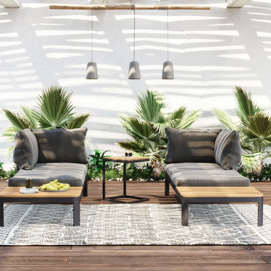 - Outdoor Sitzplatz und Ottomane in einem für Balkon, Terrasse und Garten