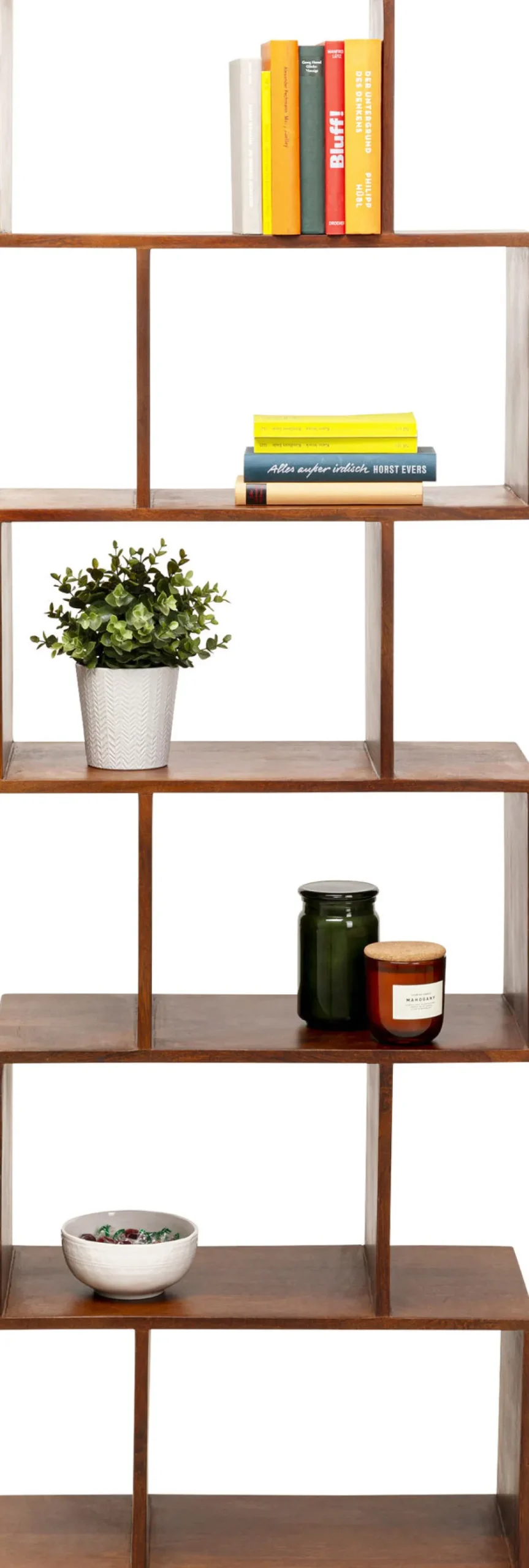 - Schickes Raumwunder: In diesem Holzregal ist viel Platz für Deko, Bücher und mehr