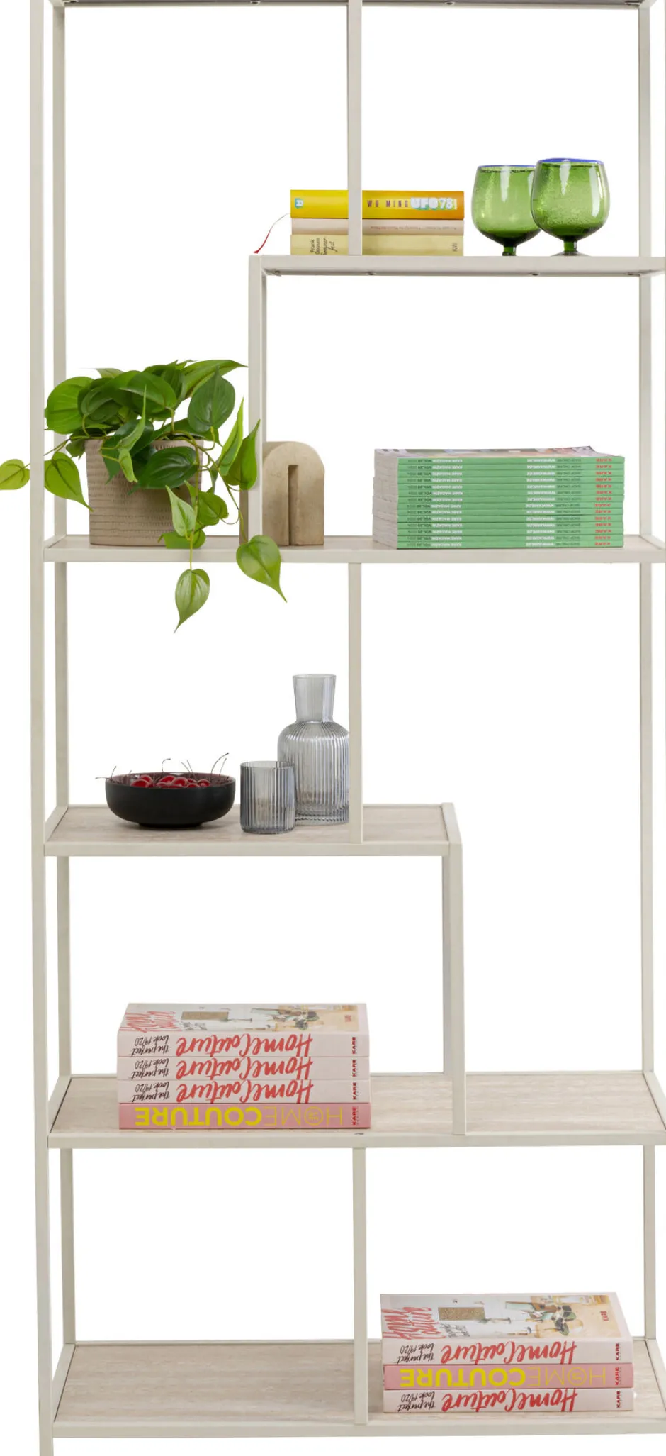 Regal Loftie Greige 77x185cm KARE – Spaß am Wohnen Material: (Gestell: Stahl pulverbeschichtet, Front: mitteldichte Fas…