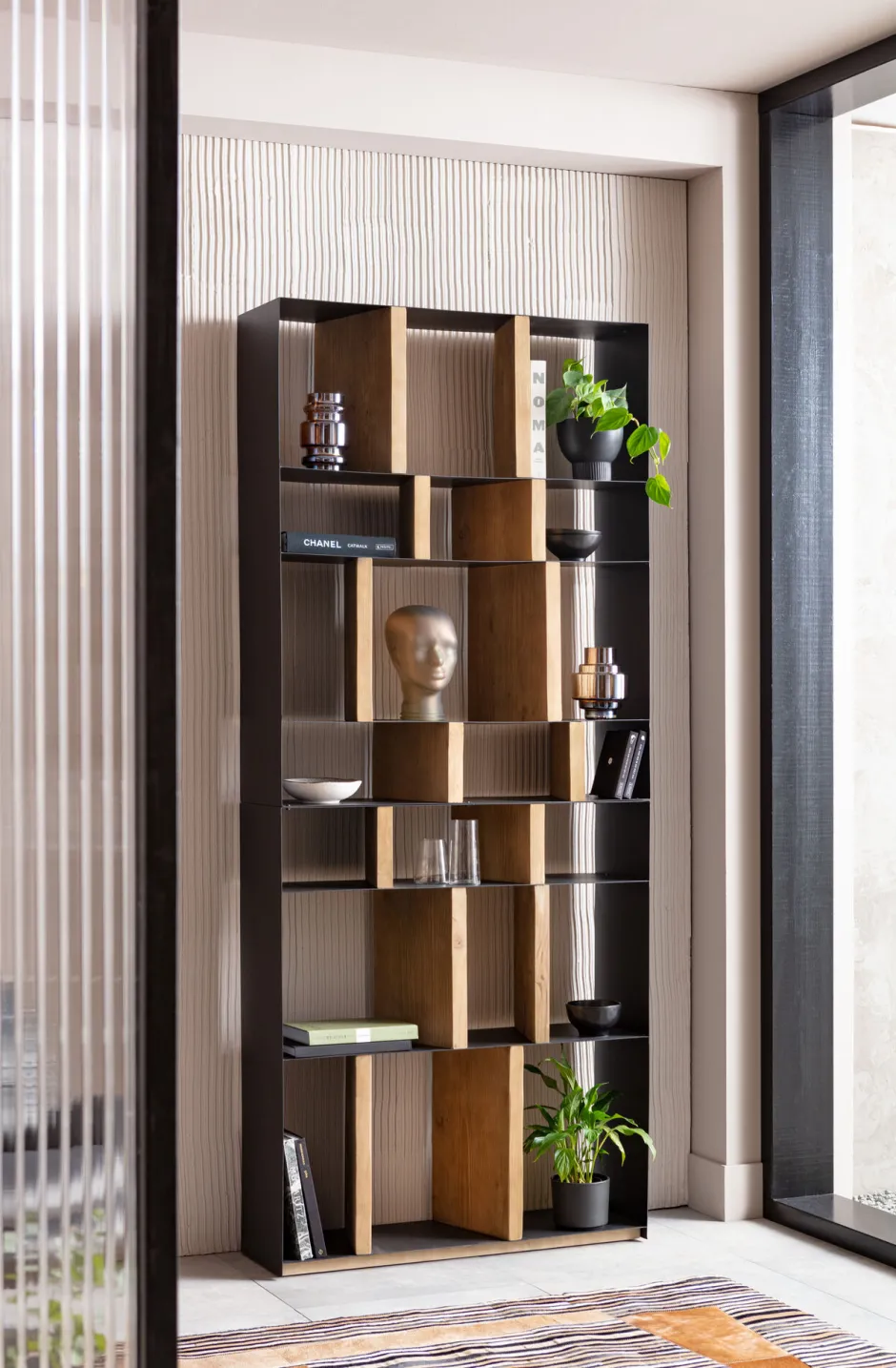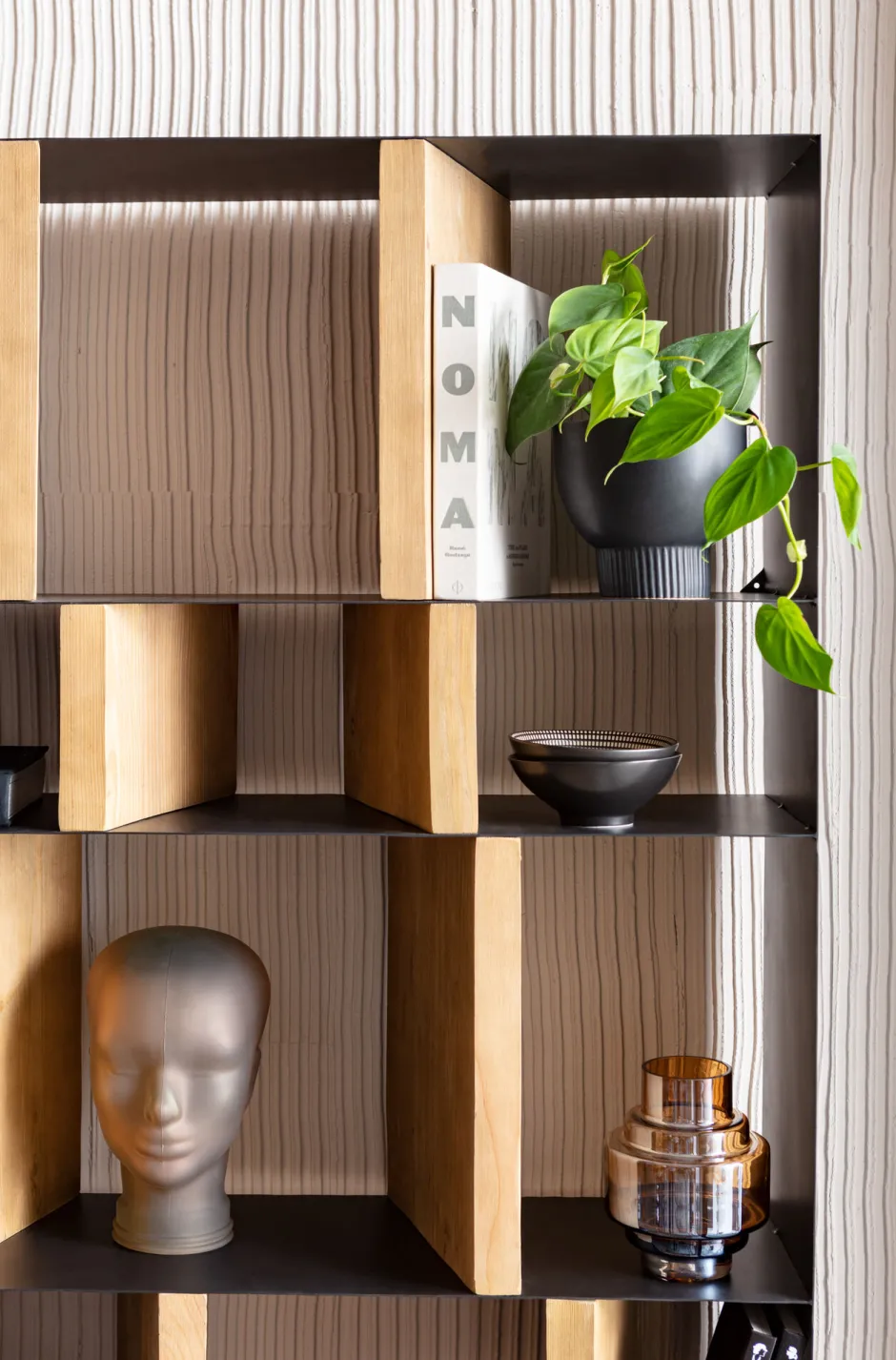 - Die moderne Linienführung und der Mix aus Stahl und Holz machen das Dekoregal einzigartig