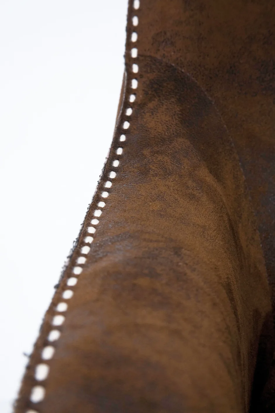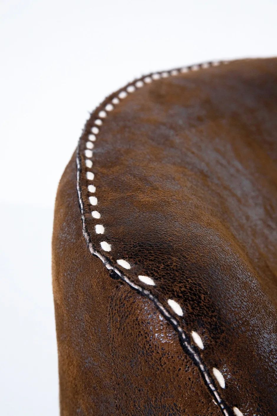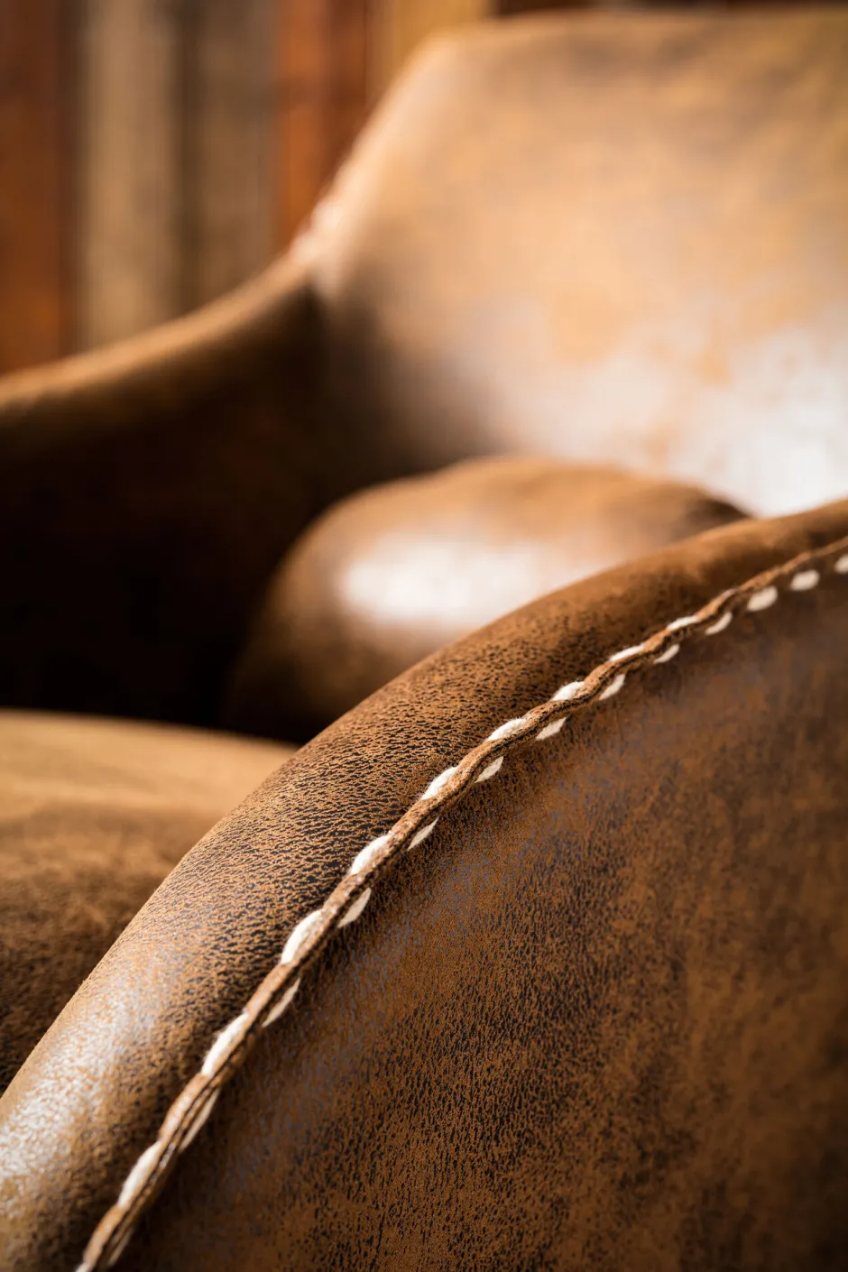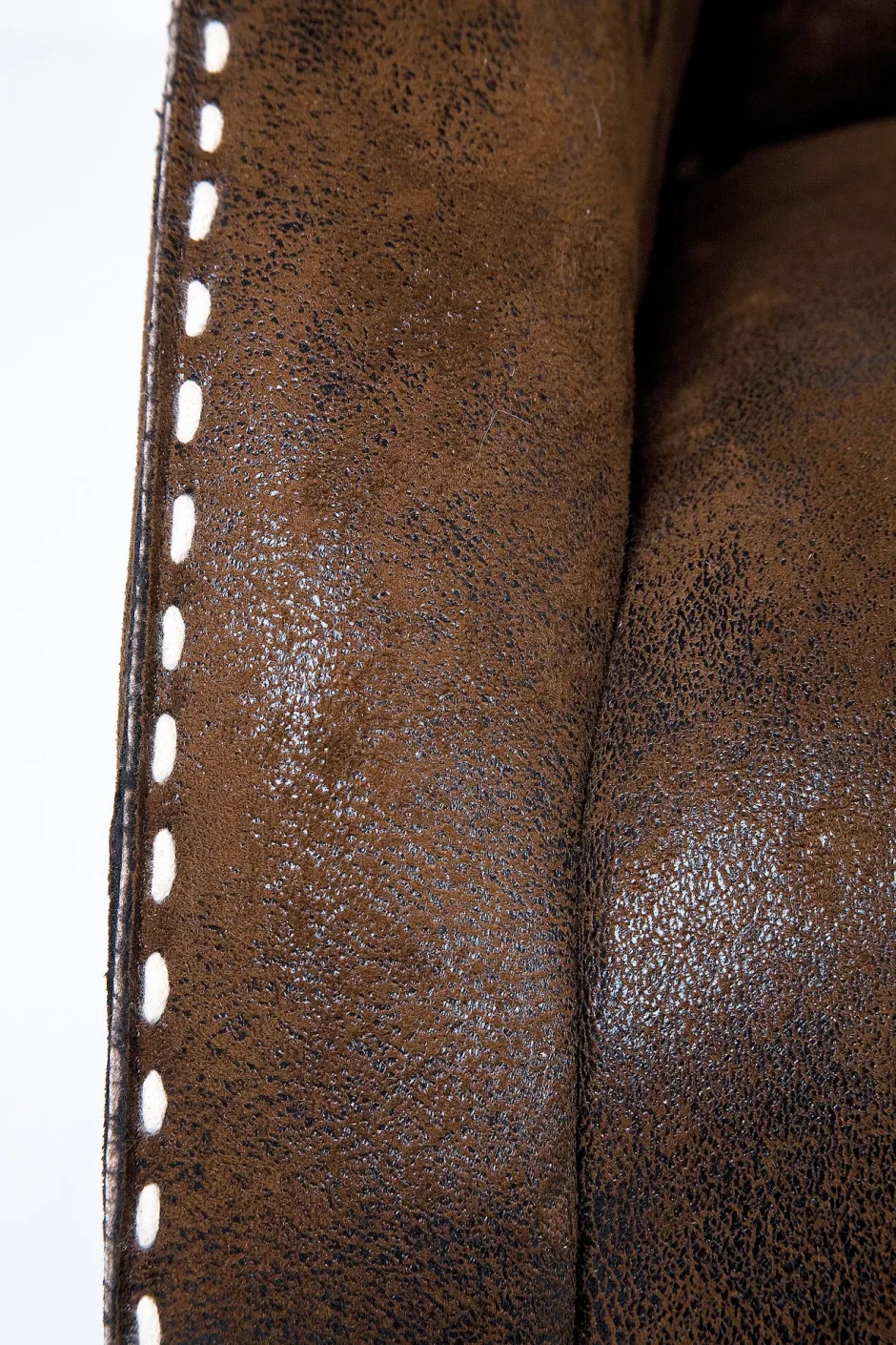 - Gepolsterter Schaukelsessel mit braunem Bezug in Vintage Lederoptik und mit lässigen weißen Ziernähten