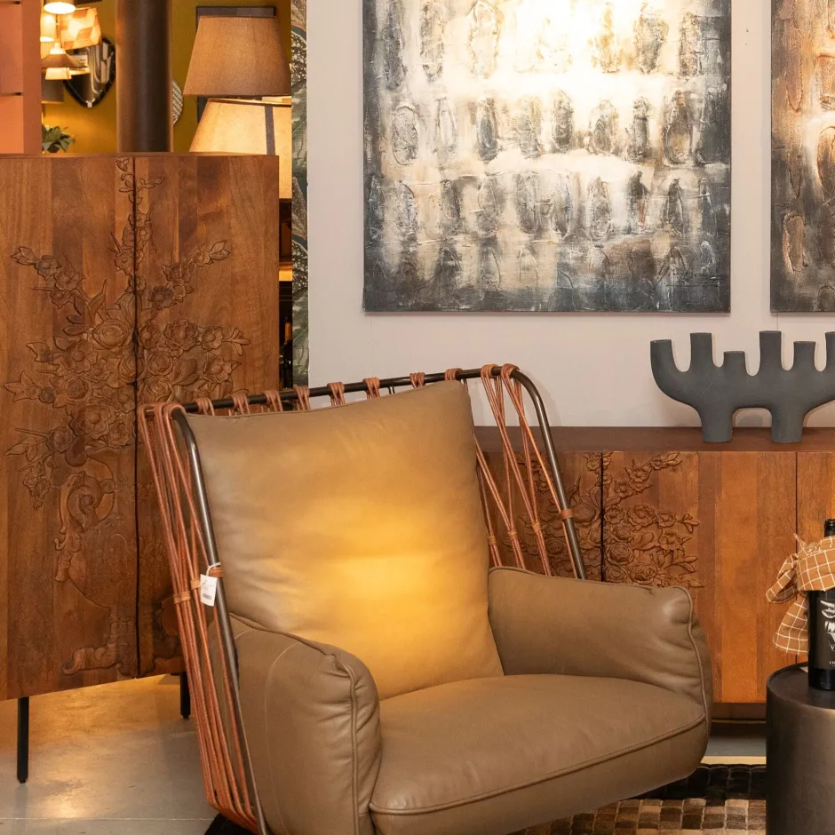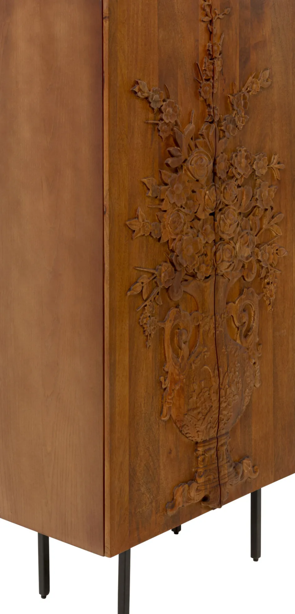- Brauner Schrank aus Mango-Holz mit Blumen-Details, 141 x 70 x 36 Zentimeter (H/B/T)