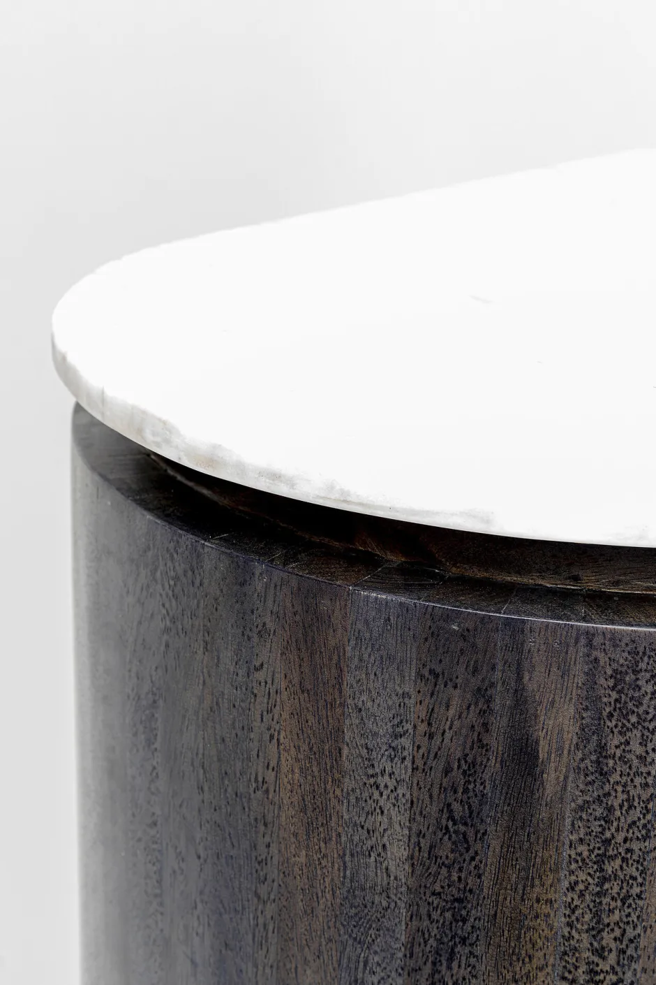 - Spielt mit dem Schwarz-Weiß-Kontrast: eleganter Schrank mit heller Marmorplatte, dunkelgrauem Massivholz-Korpus auf filigranem Stahlgestell in Schwarz