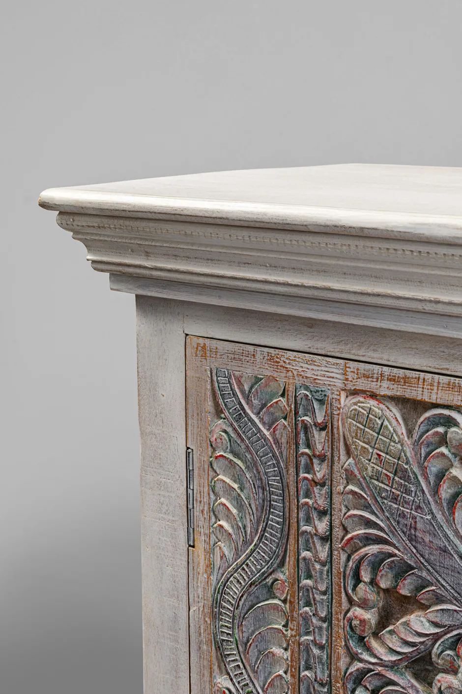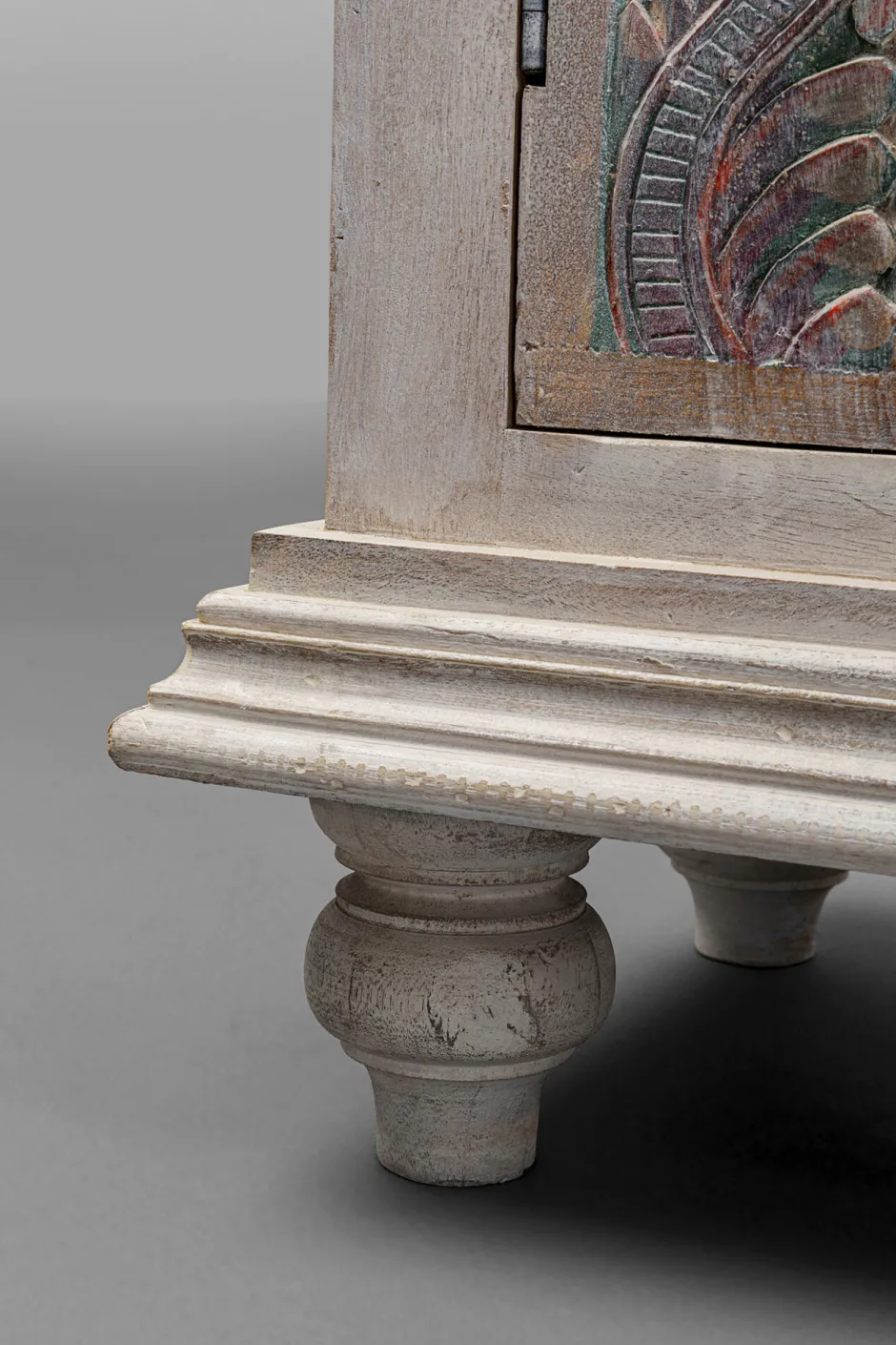 - Aufwändig geschnitzte Fronten in Pastellfarben wie Blau, Rosa und Lila