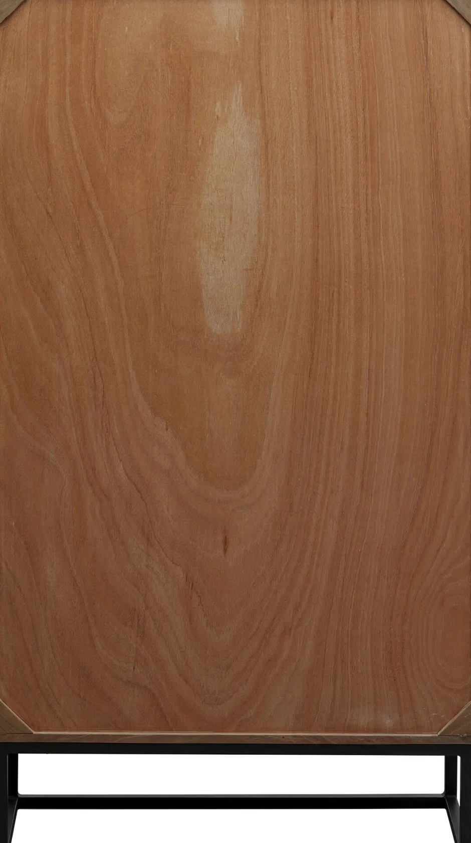 - Heller Holz-Schrank aus massivem Mangoholz auf Metallgestell