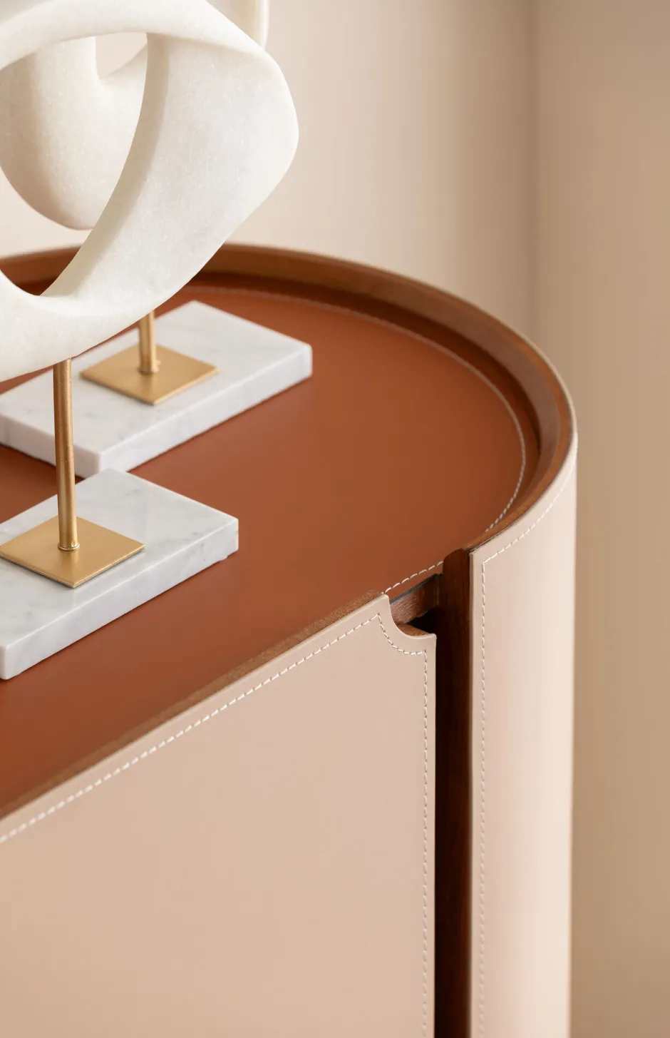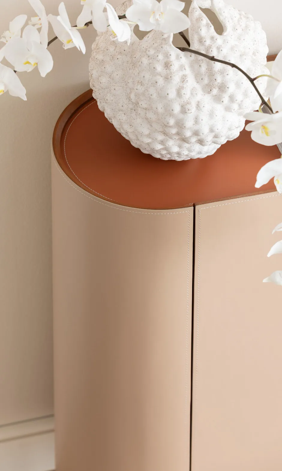 - Besticht durch seine Bespannung mit glattem, beschichtetem Textil in stilvollem Beige und Orange