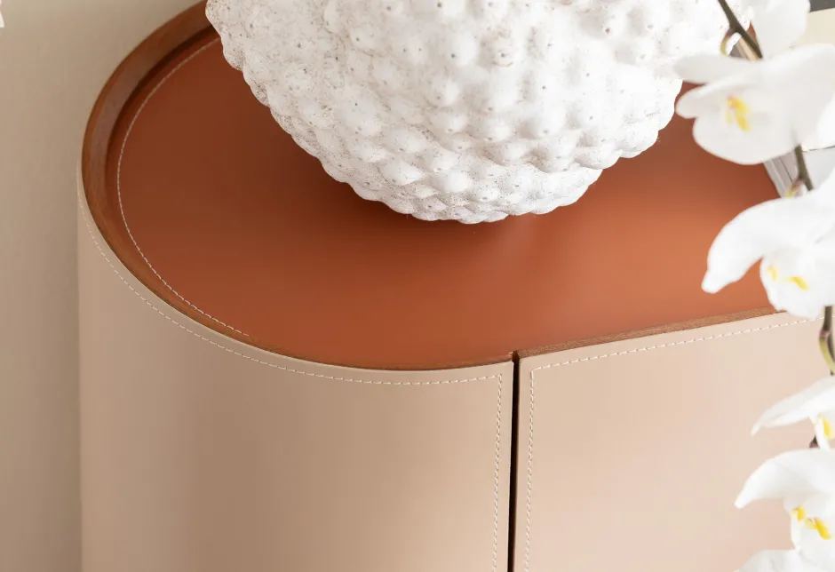 - Die feine weiße Stichnaht an den Rändern des Bezugs in Lederoptik setzt raffinierte Akzente