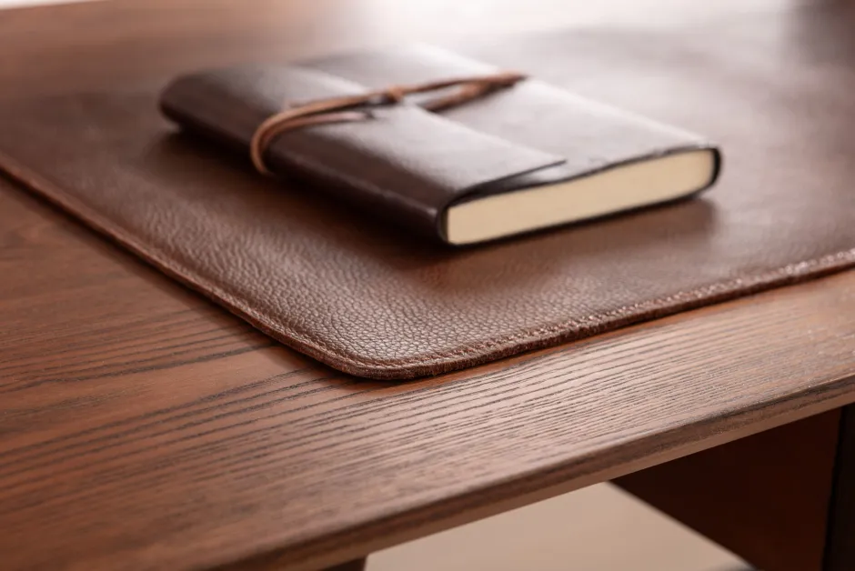 - Edler und eleganter Look dank der Schreibtischauflage und dem Zeitungsfach aus echtem Leder