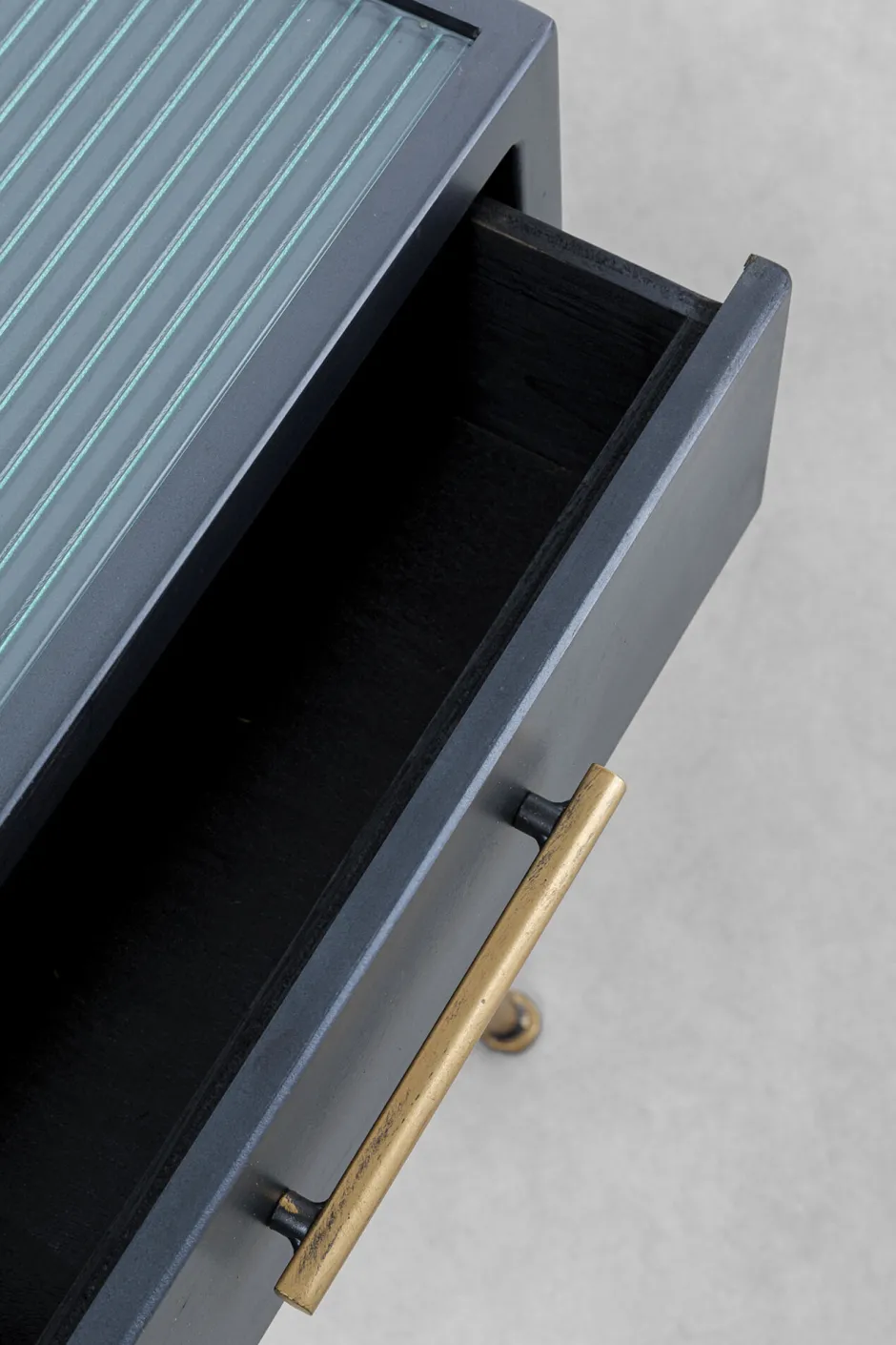 - Zeitloser Material-Mix: Besonders cool ist die Tischplatte mit dem geriffeltem Glas in Kombination mit Metall