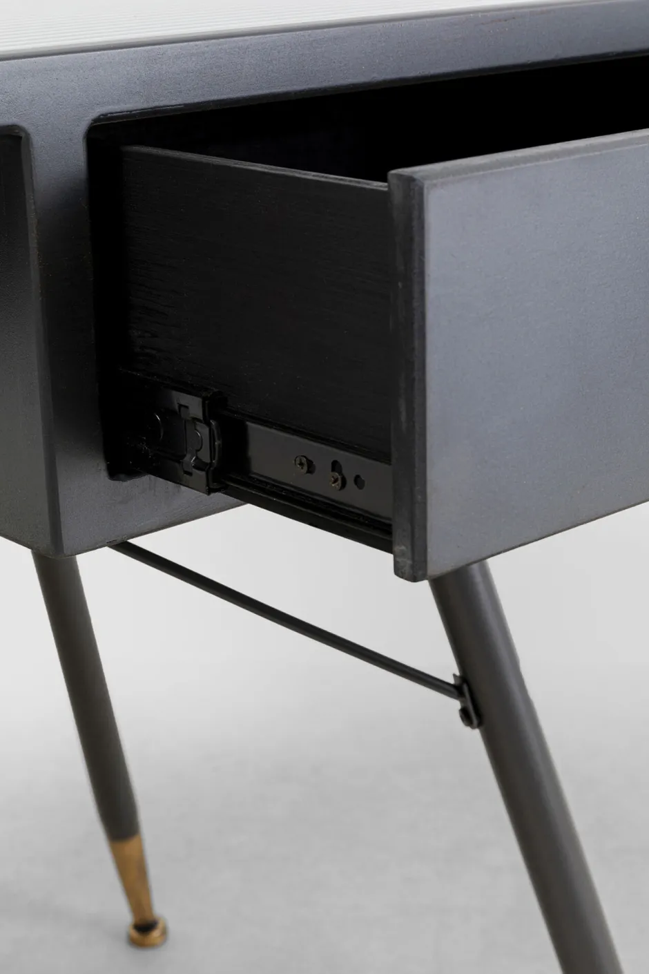 - Bürotisch in Schwarz: Der Understatement-Look wird durch die messingfarbenen Details veredelt