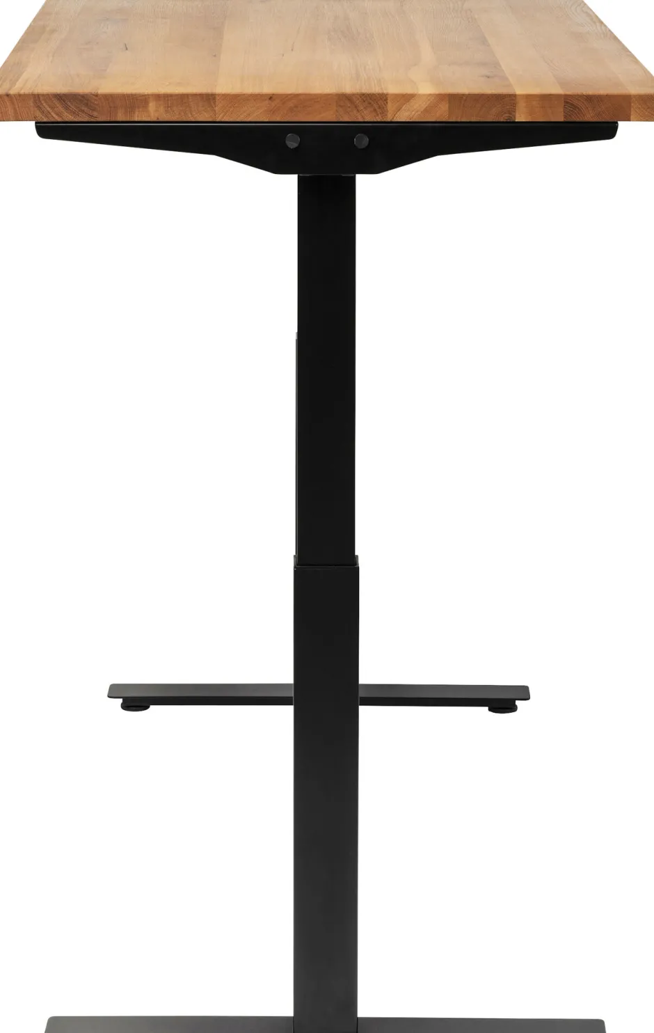 - Rechteckiger, elektrisch höhenverstellbarer Schreibtisch mit handgefertigter 3 cm starker Eichenholz-Platte und lackierten Stahl-Kufen in Schwarz