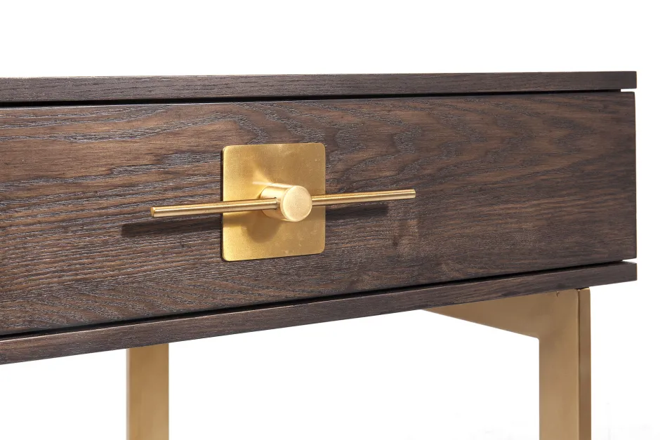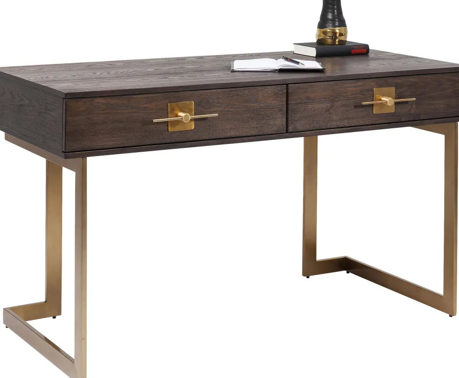 - Schreibtisch, der mit dem grafischen Gestell im Messing-Look sehr edel wirkt