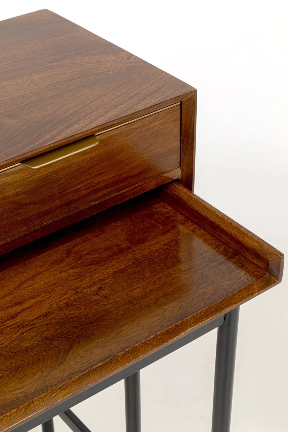 - Wie bei einem Sekretär verfügt der Holztisch über einen Aufsatz mit drei geräumigen Schubladen, die beim Verstauen und Aufräumen helfen