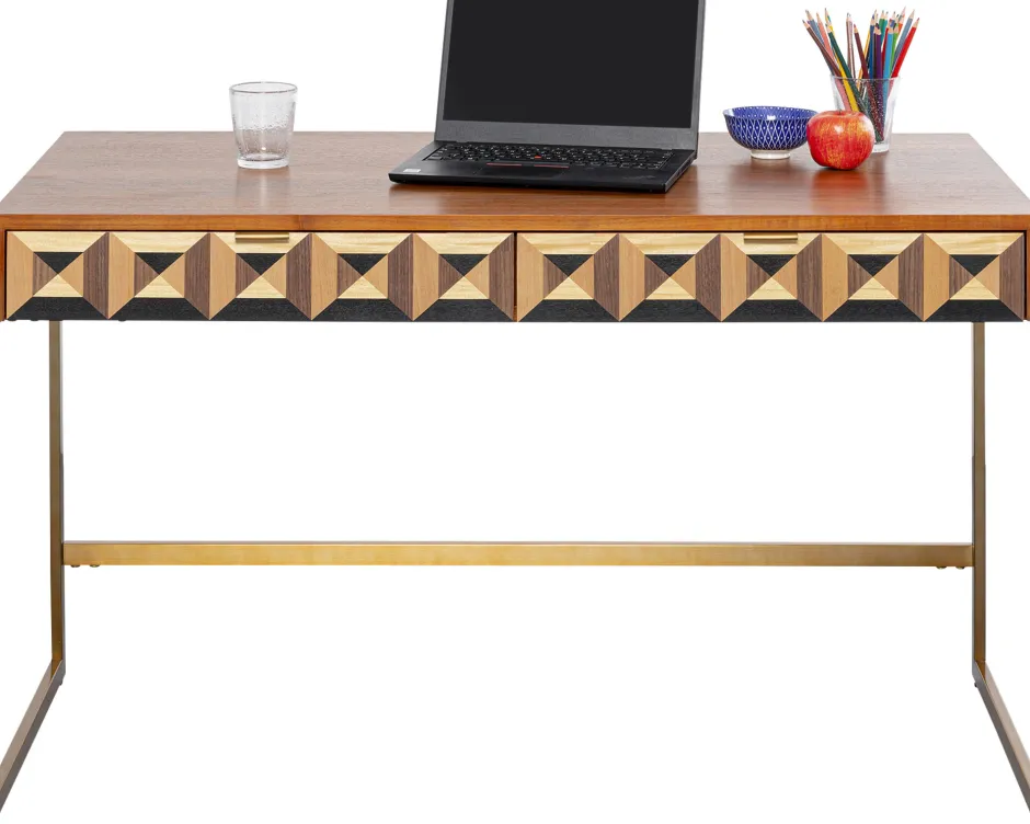 - Exklusiver Holz-Schreibtisch mit einer Front in 3D-Optik, 76 x 120 x 59 Zentimeter (H/B/T)