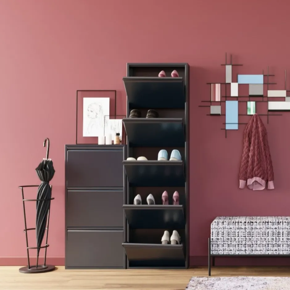 - Smarter Stauraum! Besonders flacher Schuhschrank mit drei praktischen Kippfächern