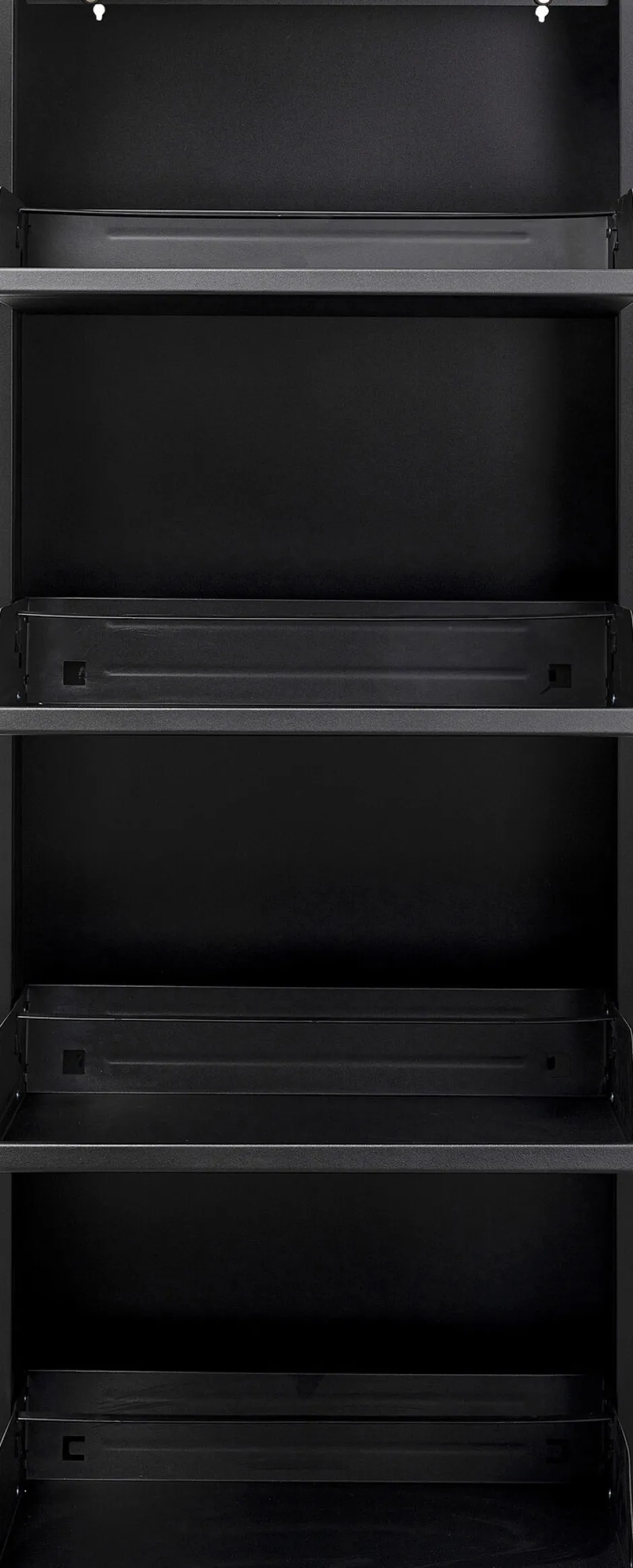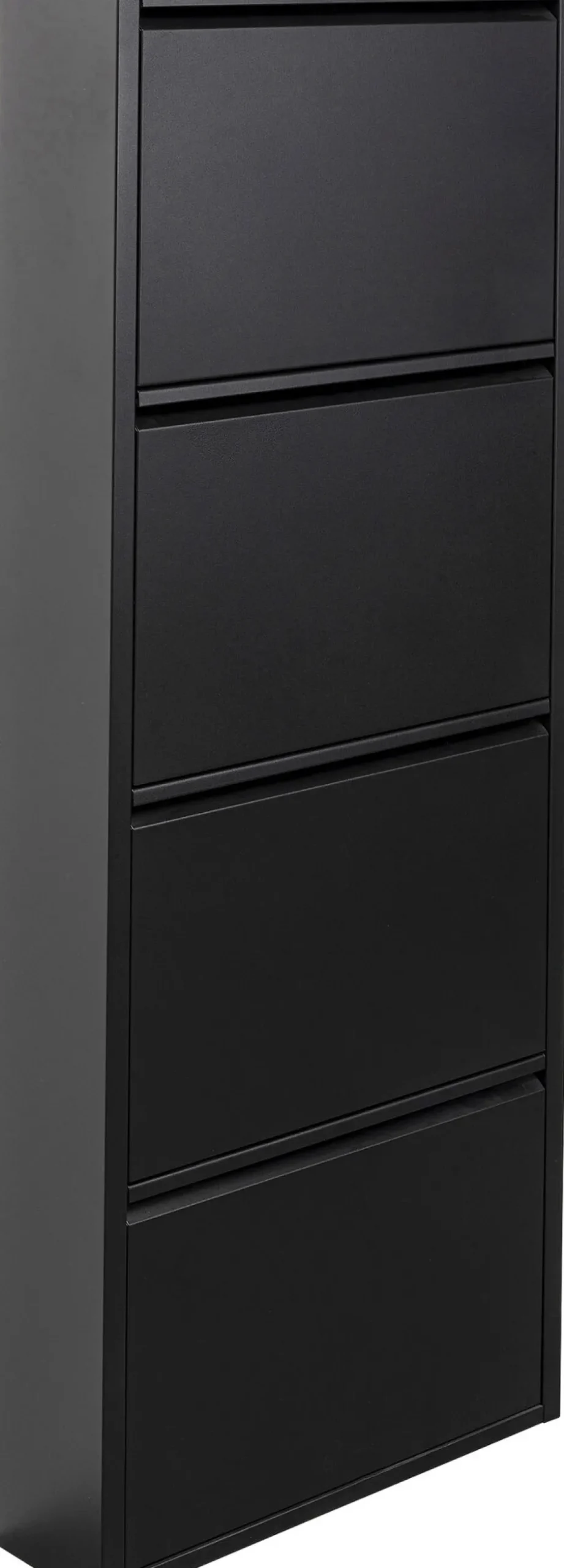 - Praktischer, schwarzer Schuhschrank mit vier Kippfächern, 136 x 50 x 15 Zentimeter (H/B/T)