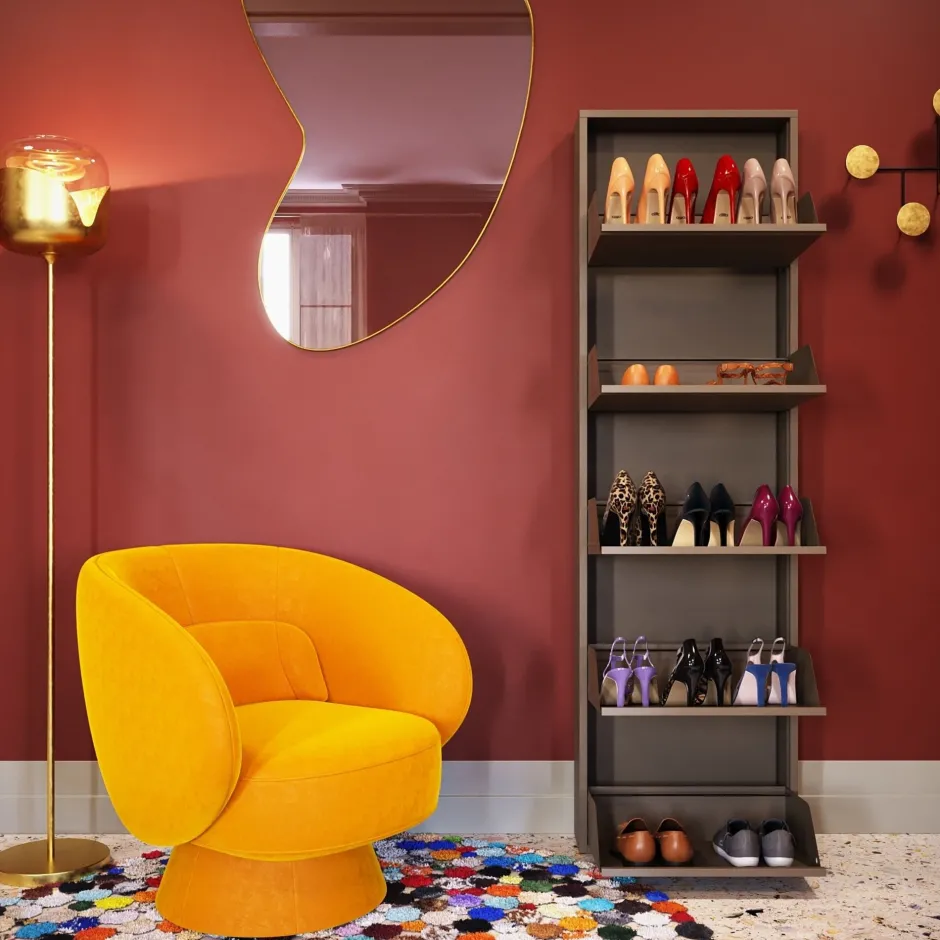 - Mit fünf Kippfächern, die Schuhe vor Staub und Blicken schützen
