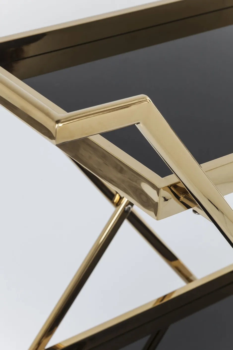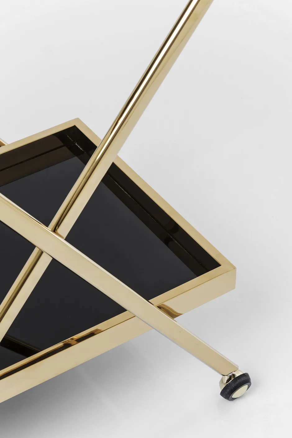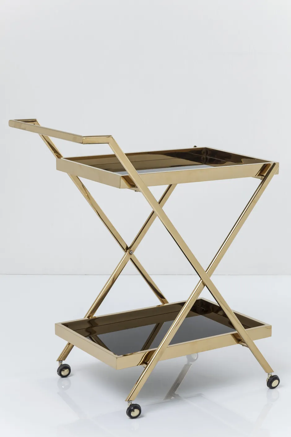 - Eleganter, goldener Barwagen im Retro-Design, mit Rollen, Stahl-Gestell und zwei schwarzen Glas-Ablagen
