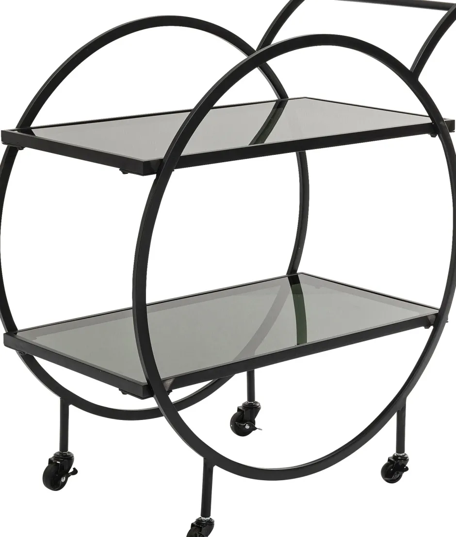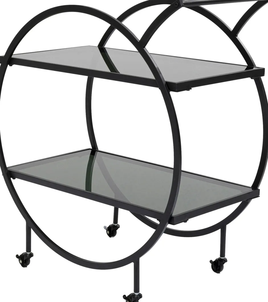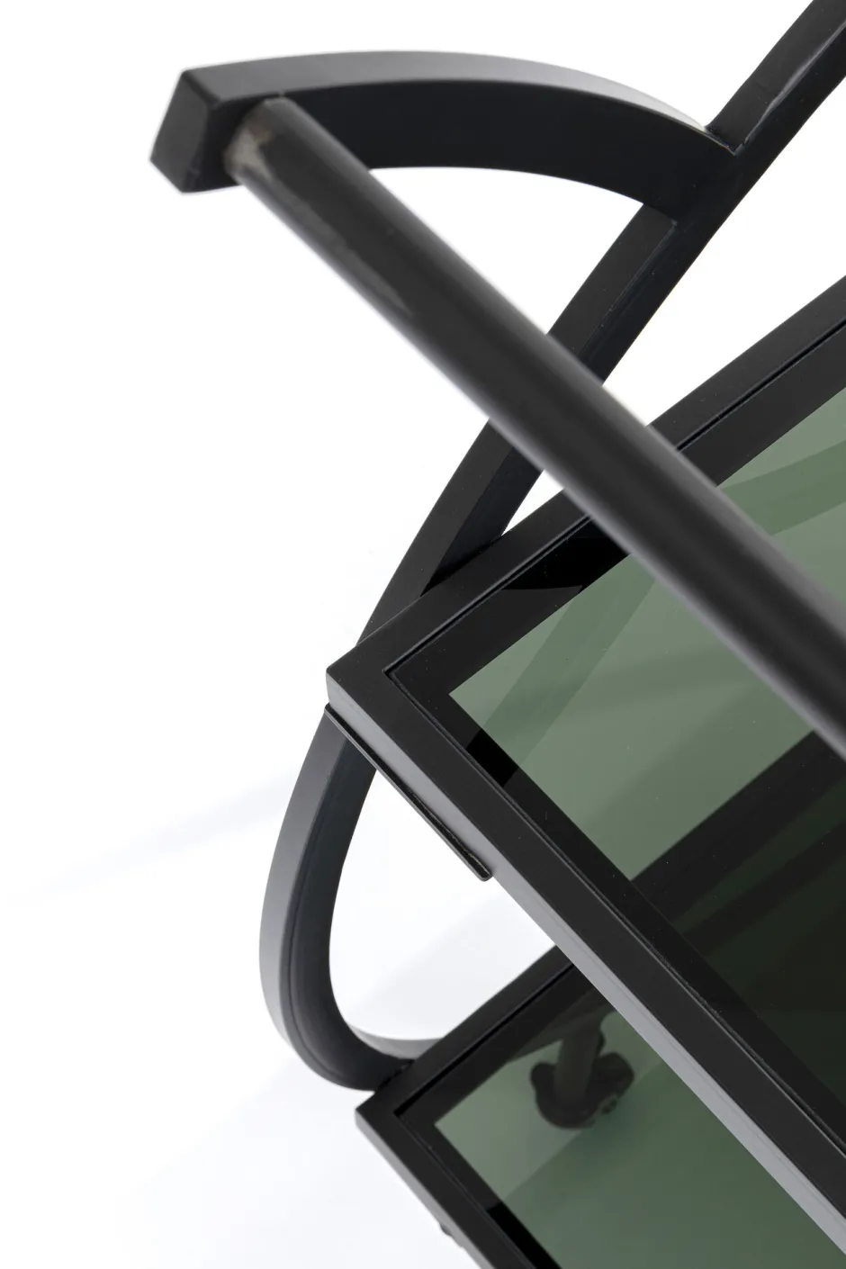 - Eleganter Servierwagen in Schwarz mit dunklen Glasplatten und einem Hauch Retro-Design