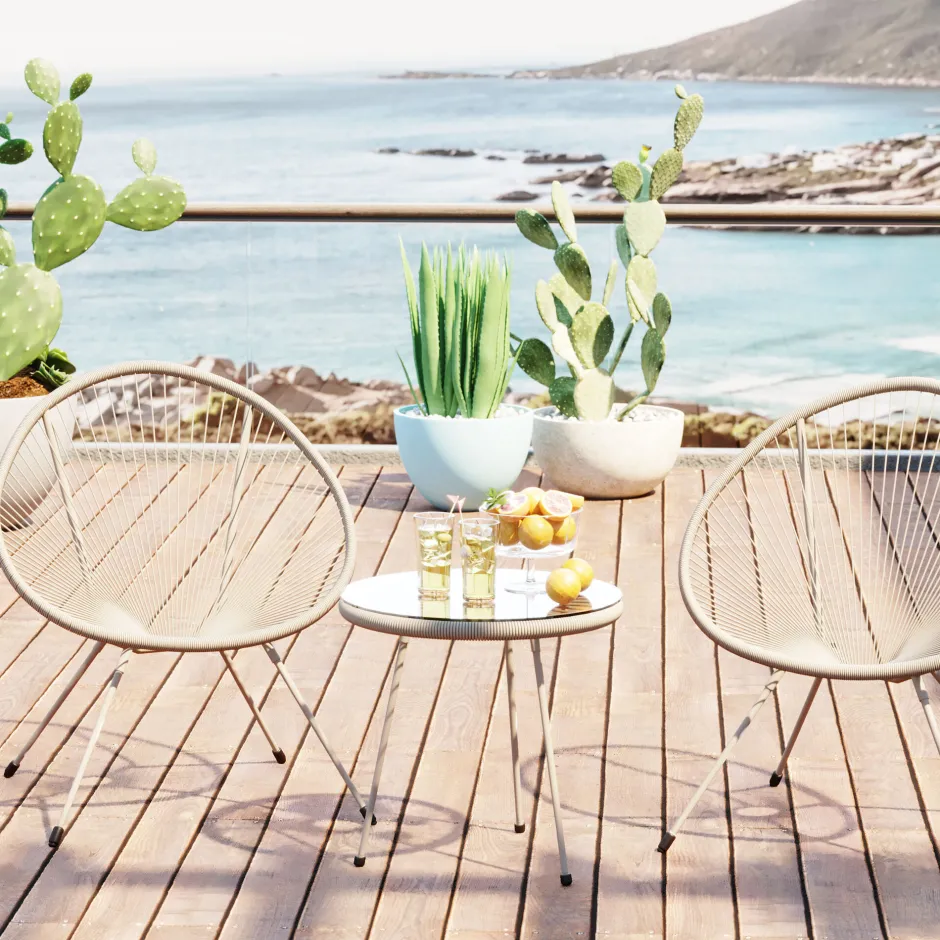 - Kombiniert mit weiteren Acapulco-Sesseln, in verschiedensten Farben erhältlich, lassen sich einzigartige Outdoor-Oasen für jeden Wohnstil kreieren
