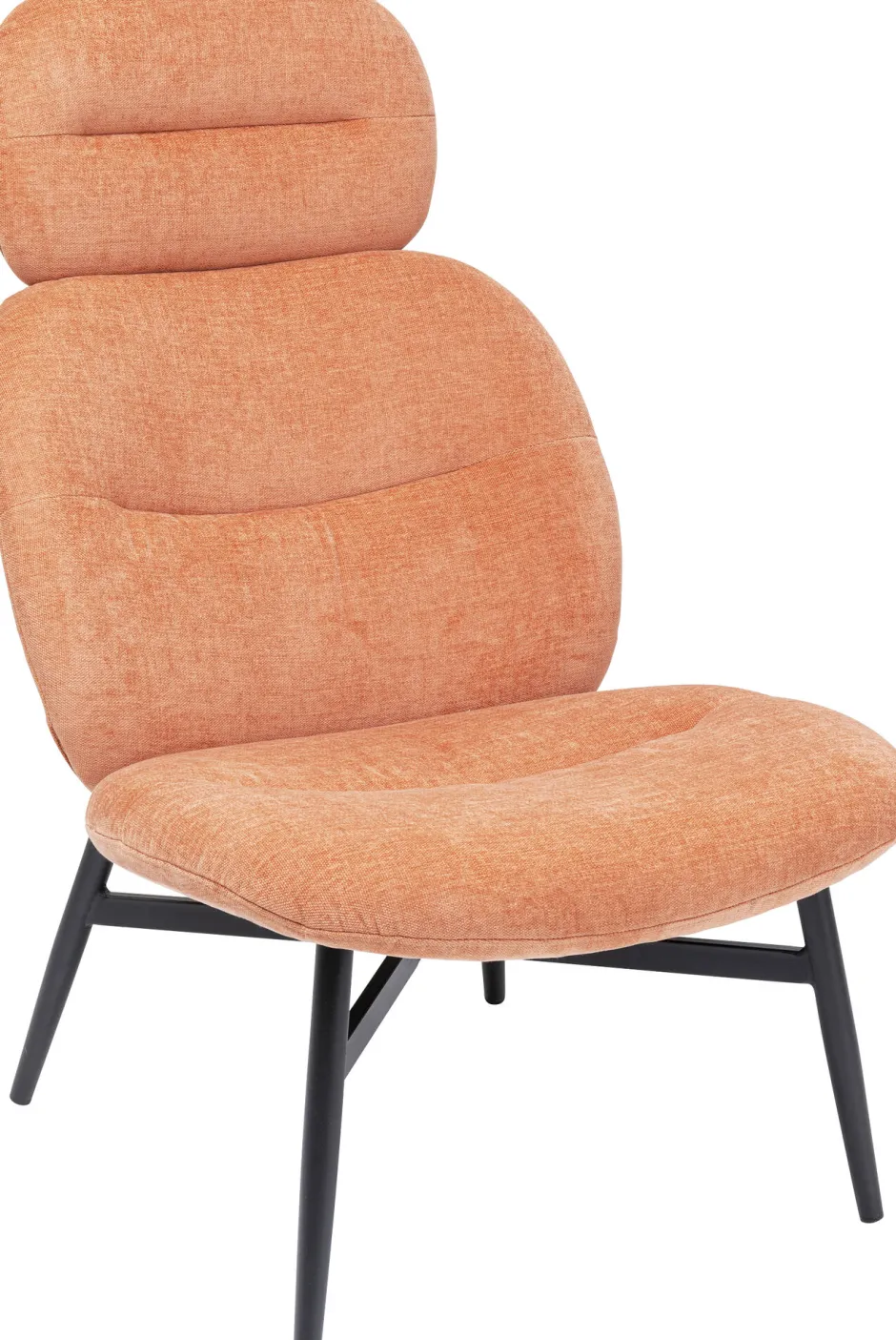 - Moderner Polstersessel mit weichem Bezugstoff in zartem Orange und Metall-Gestell