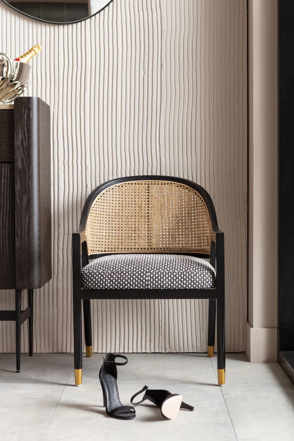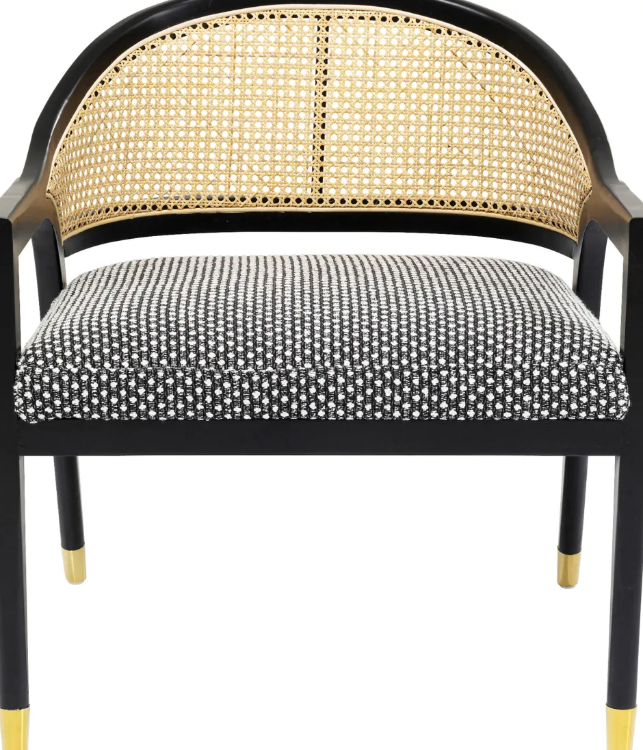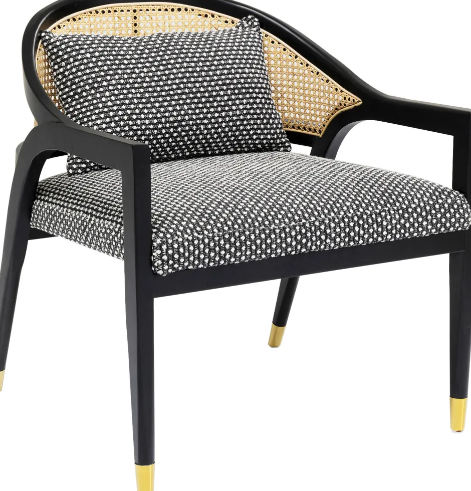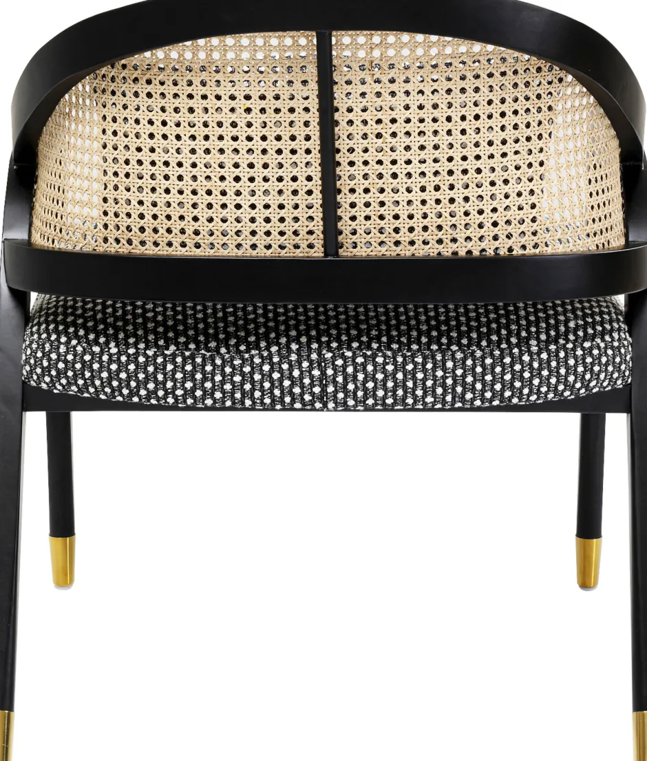 - Der Mix macht’s: Edles Wiener Geflecht trifft auf schwarz-weiß gemusterten, strukturierten Bezugsstoff