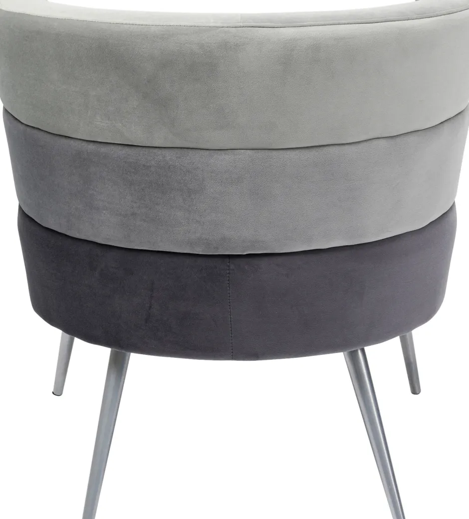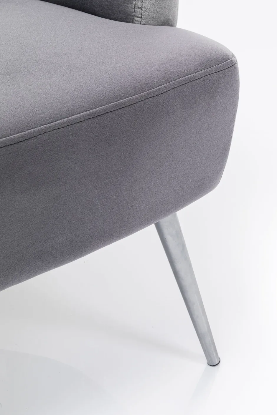 - Voll gepolsterter, kleiner Cocktailsessel in grauer Samtoptik mit silberfarbenen, leicht ausgestellten Beinen