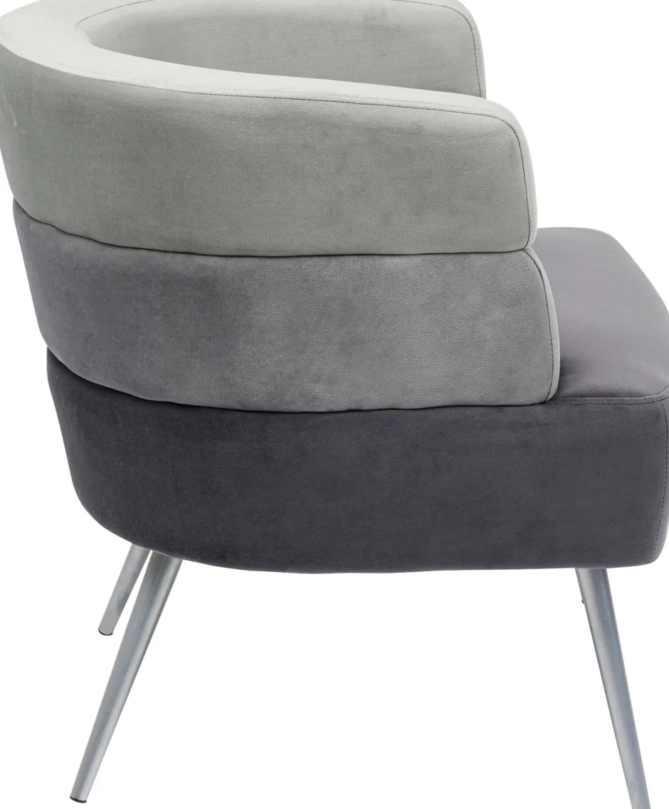 - Die drei abgestuften Grautöne der Polster und die zweigeteilte Rückenlehne verleihen diesem Lounge-Sessel seinen besonderen Designfaktor
