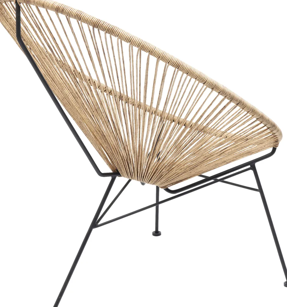 - Outdoor-geeigneter Designersessel in Natur mit schwarzem Gestell, für Terrasse, Garten und Balkon