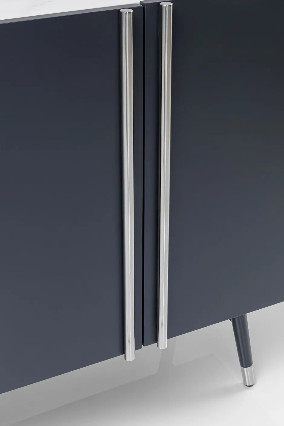 - Modernes Sideboard in dunklem Grau mit silberfarbenen Akzenten und Marmoroptik