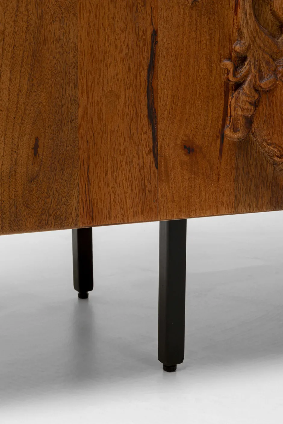 - Braunes Sideboard aus Mango-Holz mit Blumen-Details, 141 x 70 x 36 Zentimeter (H/B/T)
