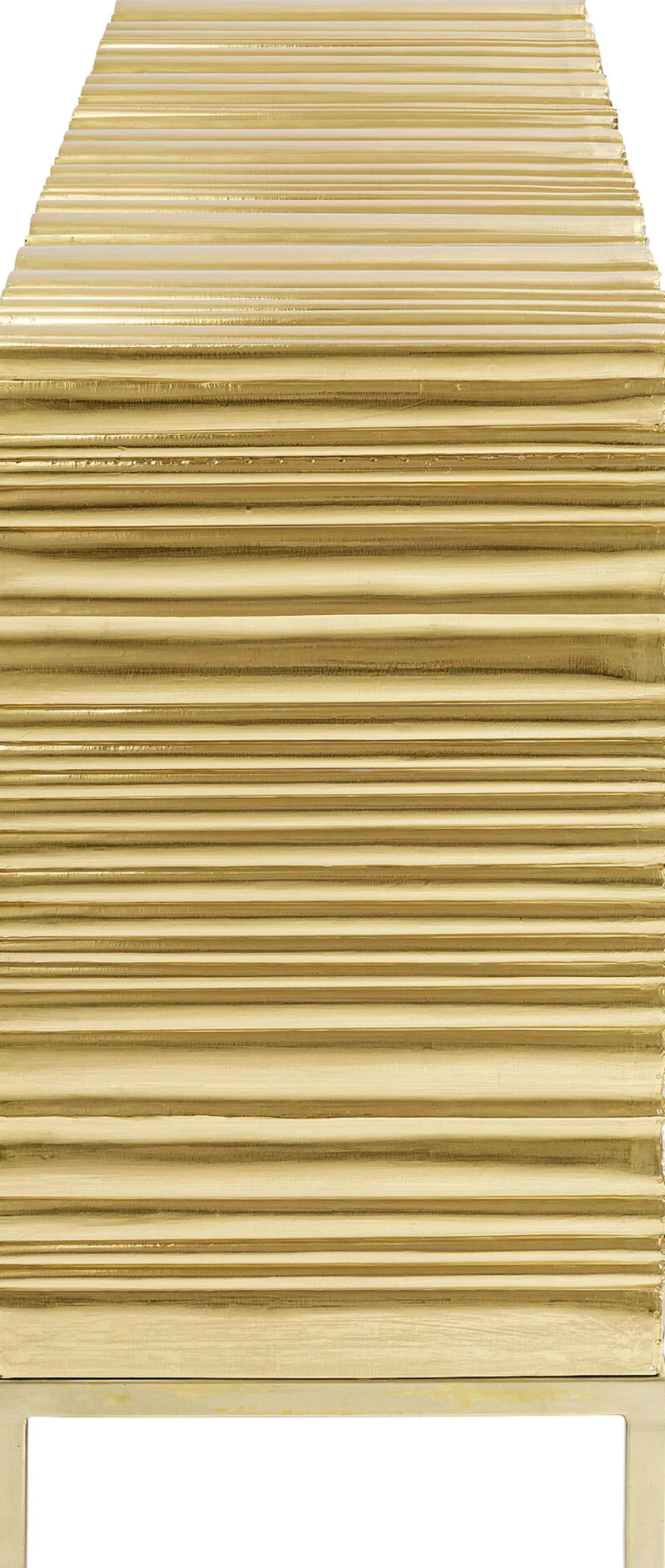 - Glanzvolles, goldenes Sideboard mit Reliefoberflächen und grünen Griffen