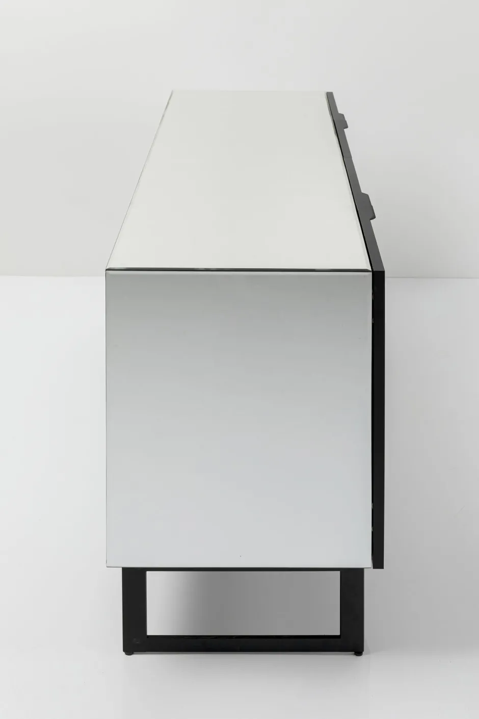 - Sideboard verspiegelt mit vier Türen, 80x160x45 cm (H/B/T) mit Beinen aus Metall in Schwarz
