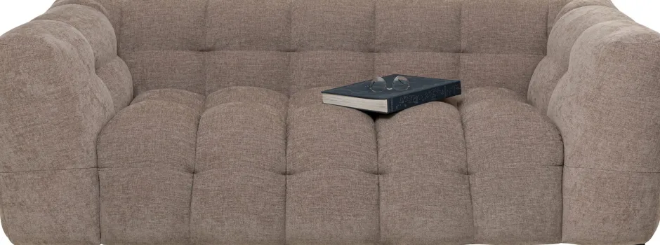 - Der gewebte Bezugsstoff aus Chenille-Garn in modernem Hellbraun ist samtig-weich, strapazierfähig und pflegeleicht
