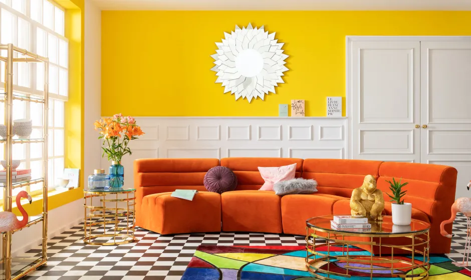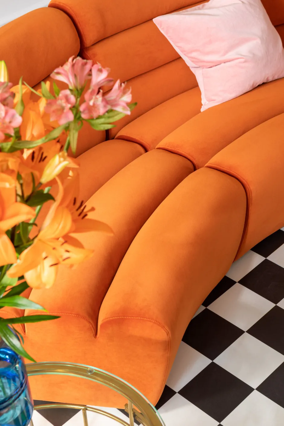 - Extrem bequeme Polster und ein widerstandfähiger Samtbezug in sonnigem Orange