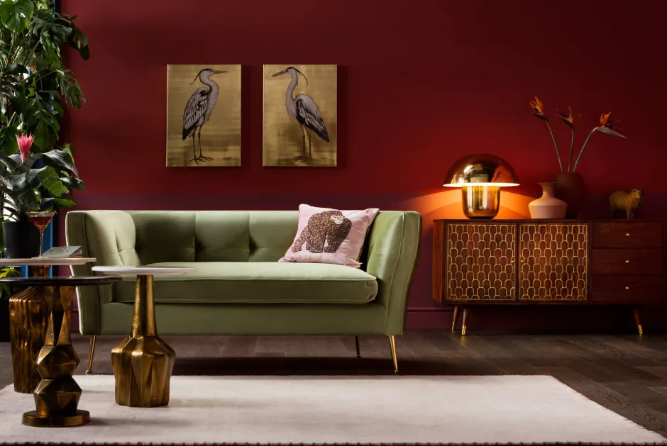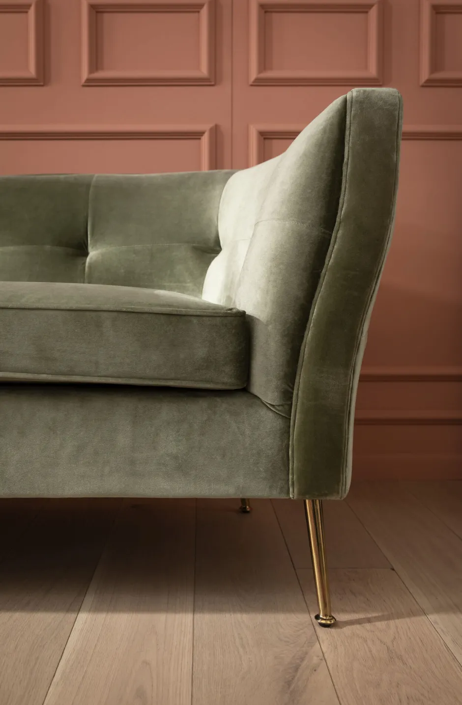 Sofa Rimini 2-Sitzer Grün Schmeichelnder SamtAngesagter Mid-Century-LookDurchgehende Arm- und Rückenlehne Sofa Rimini …