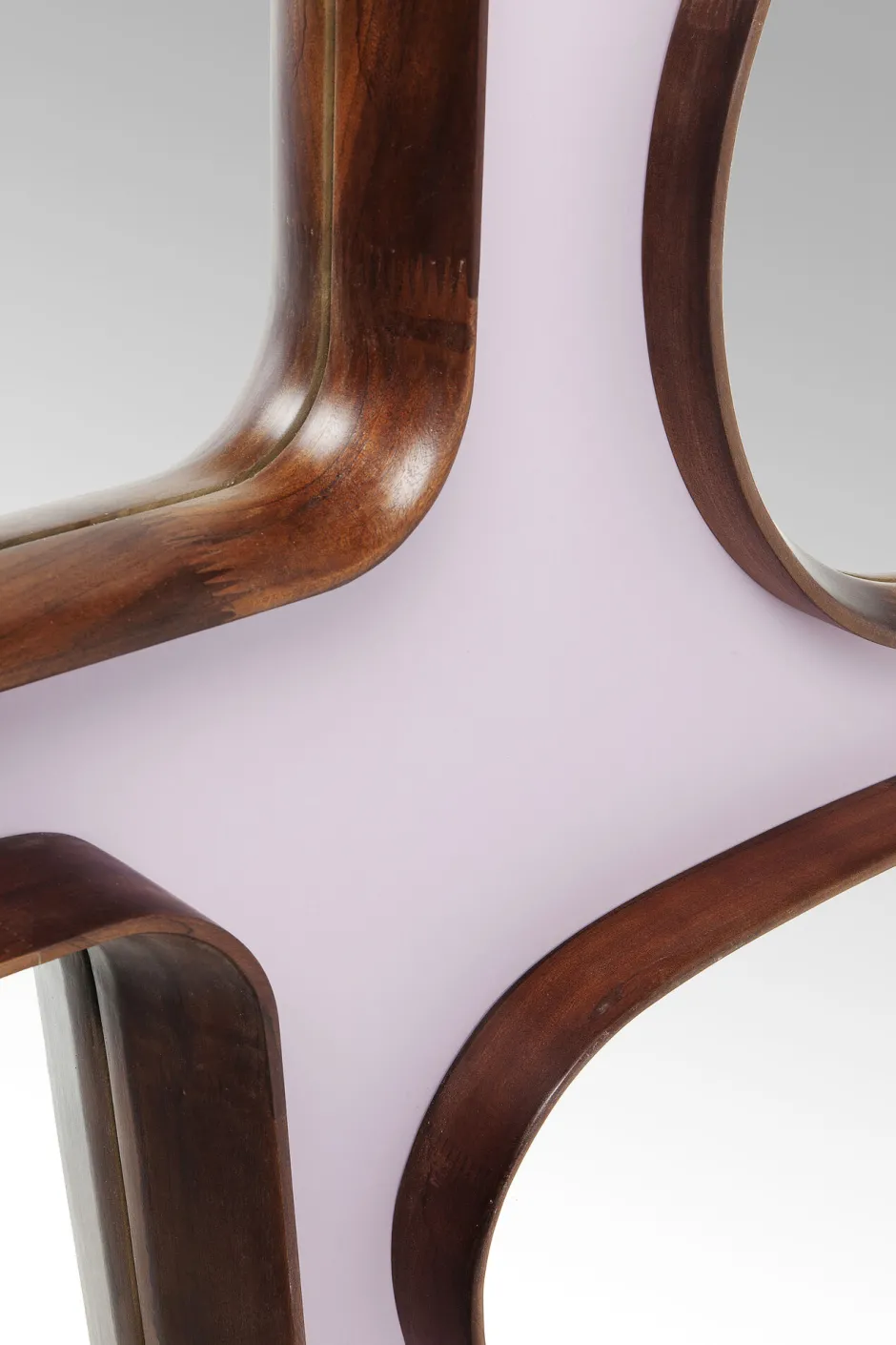 Die Lieferung erfolgt aufgebaut.Material: (Glas: Glas verspiegelt, Rahmen: Blauglockenbaum Massivholz lackiert, Buche Massivholz lackiert, Rückwand: mitteldichte Faserplatte naturbelassen, Aufhängung: Stahl verchromt)
