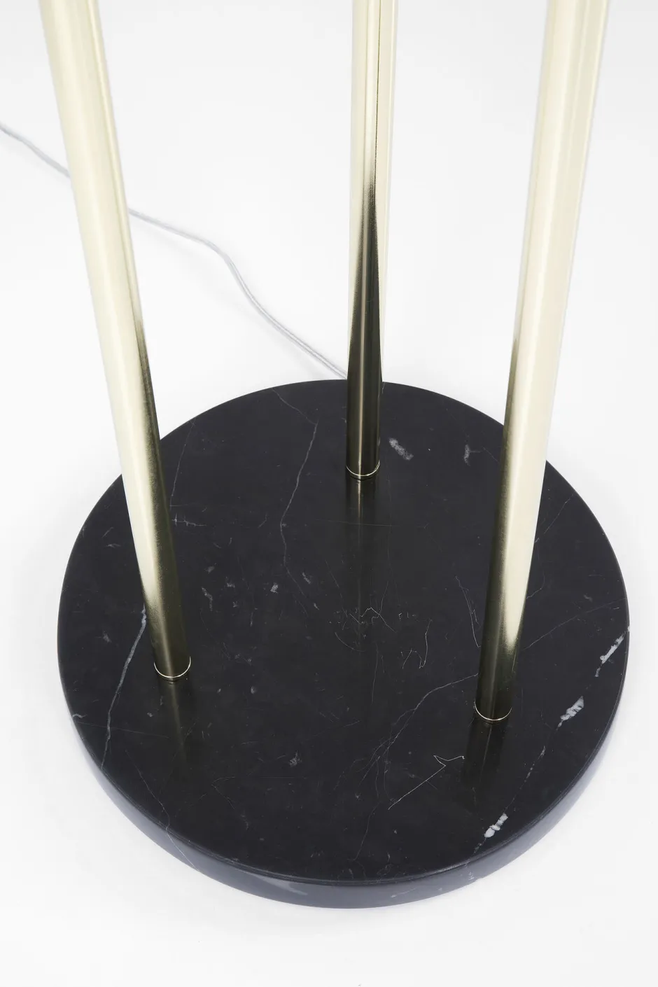 - Glamour auf edle Art und Weise: hochwertige Stehleuchte, in Handarbeit gefertigt, mit Marmorfuß und drei runden Schirmen aus leicht verspiegeltem Glas