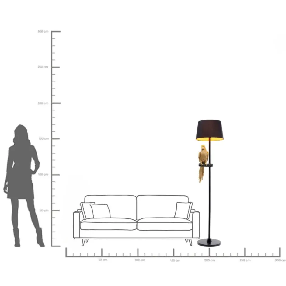 - Schwarze Stehlampe mit dekorativem Papagei in Gold, 176cm hoch