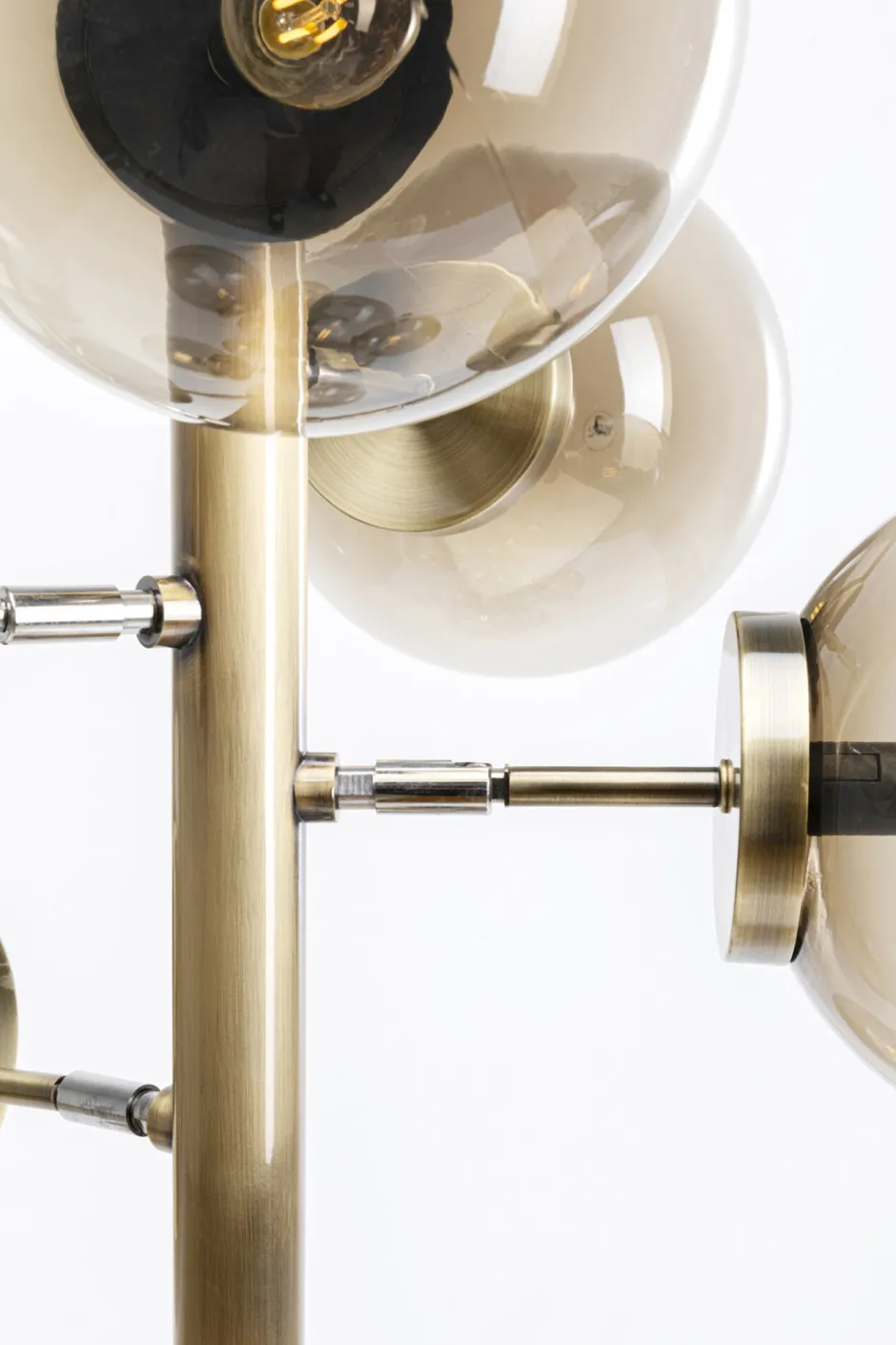 - Stabiles Gestell aus mit Messing beschichtetem Stahl mit rundem Sockel