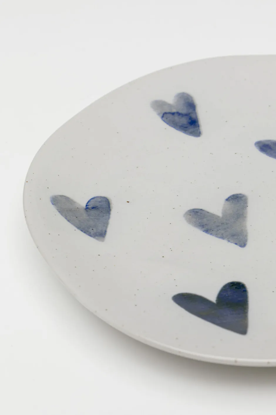 - Kleiner Teller aus Keramik in Weiß mit blauen Herz-Details, 2.4 x 21.6 x 21.6 Zentimeter (H/B/T)