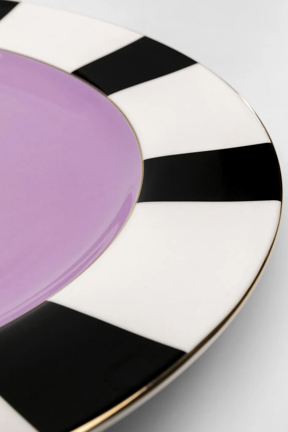 - Einzigartiger Teller aus Porzellan in Lila, Schwarz und Weiß, Ø31 cm