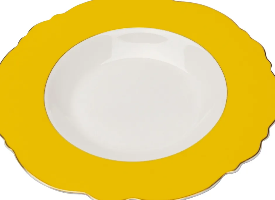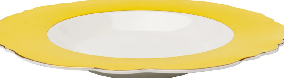 - Tiefer Teller aus Porzellan mit gelbem Rand, Ø23 cm