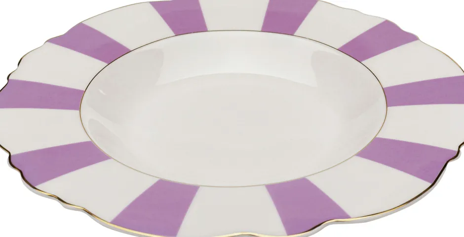 - Tiefer Teller aus Porzellan in Weiß und Lila, Ø23 cm