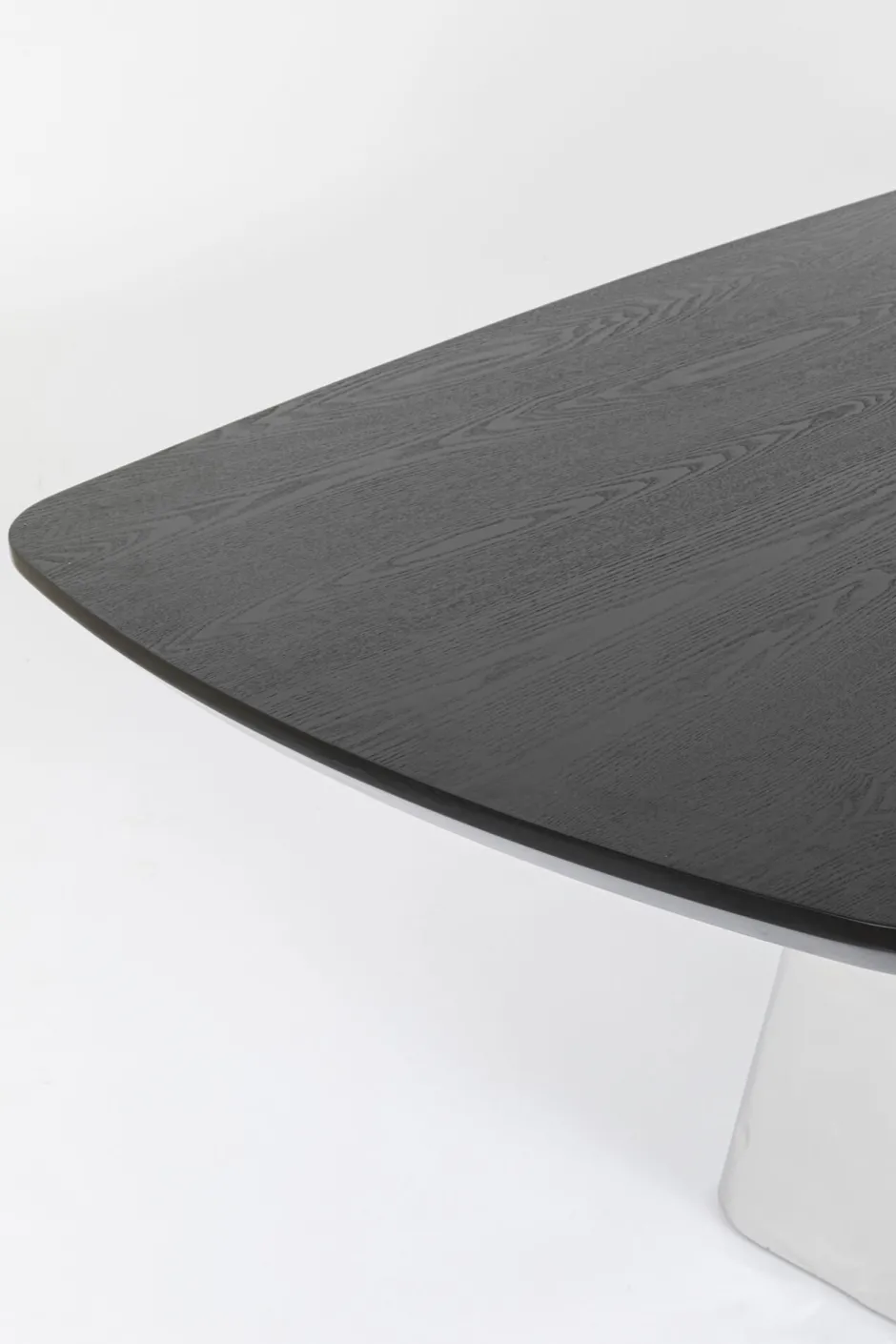 - 4,4 cm starke Tischplatte mit schwarzem, lackiertem Escheholz-Furnier, abgeschrägter Kante und runden Ecken