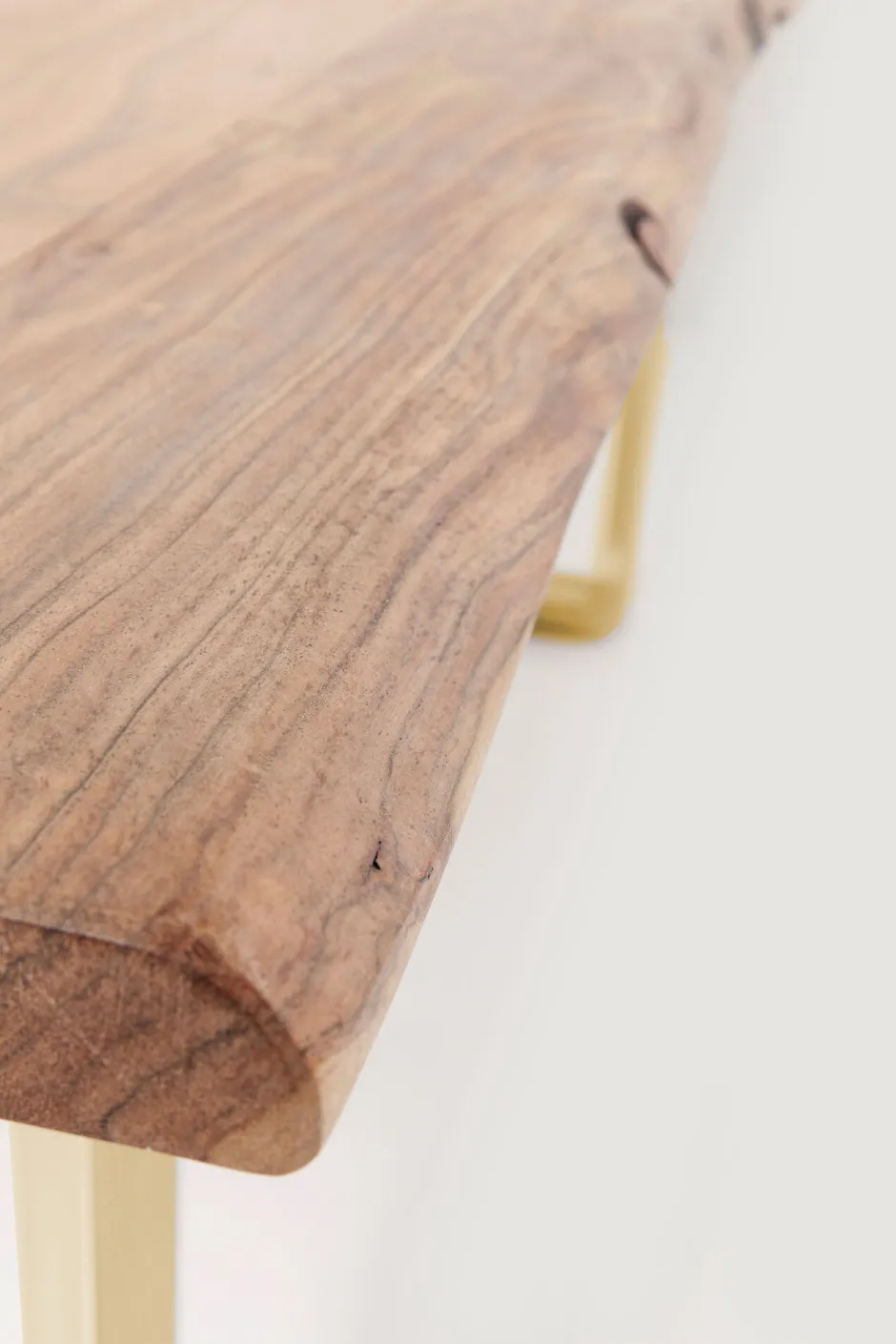 - Der natürliche Wuchs des Baumes spiegelt sich in den unregelmäßig geformten Längsseiten des Tisches wider und macht jeden Tisch zum Unikat